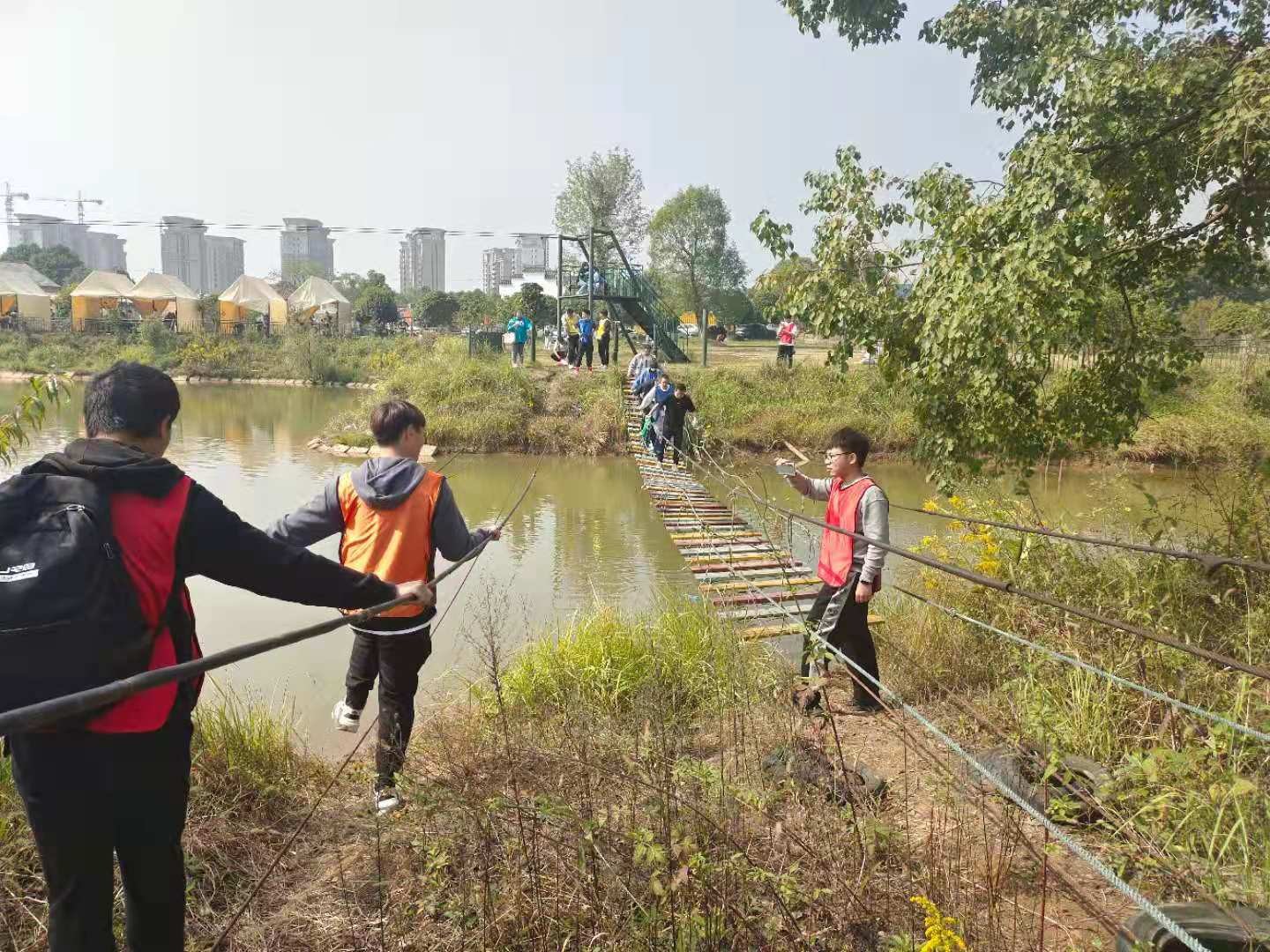然后,再由一次专门的素质拓展给学生带来情感的互动。本次素质拓展由“团队建设”、“挑战150”、“极速60秒”、“汉诺塔”还有“万里长城”五个活动组成,为期一天的活动结束后,学生们表示累并快乐着,他们收获了团队的建成以及在这个过程中的个体感受。
