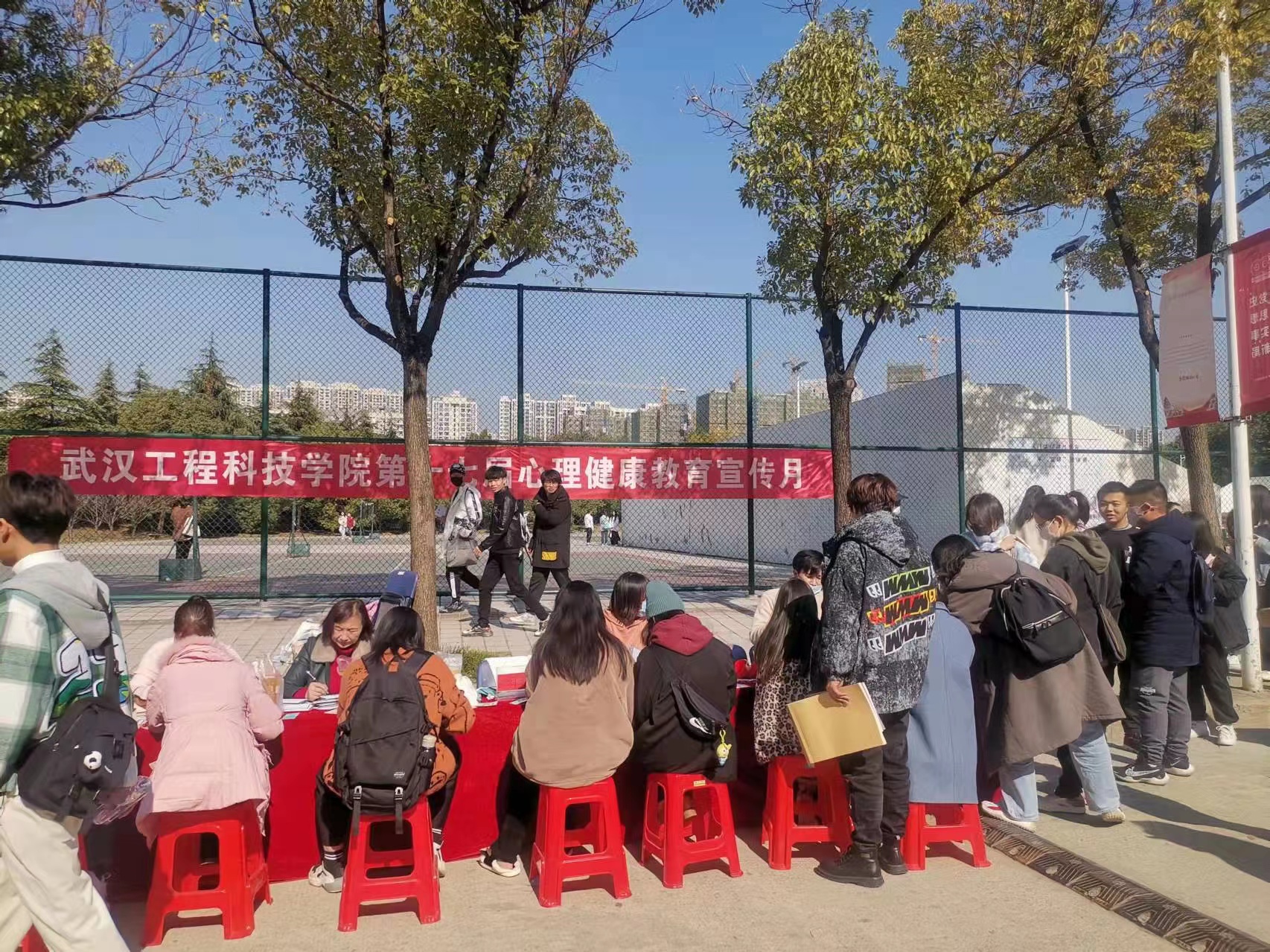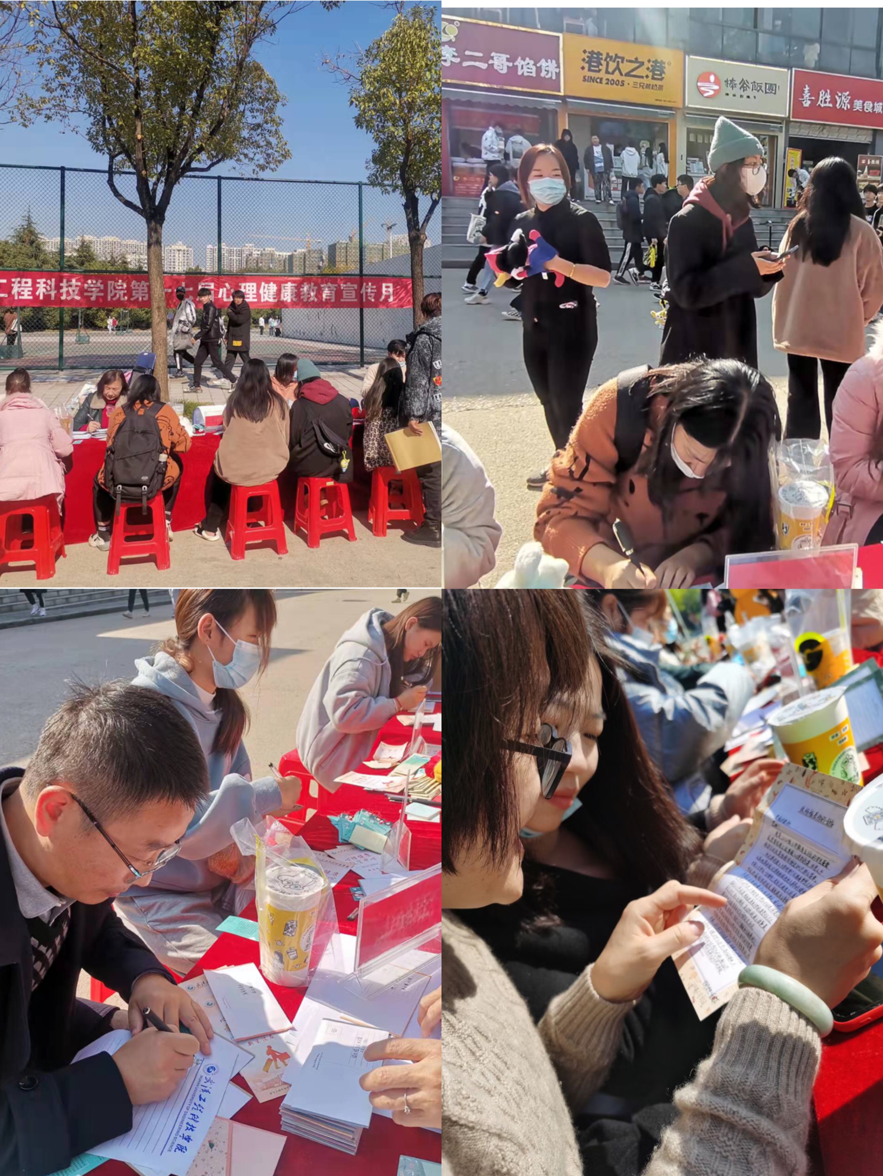 秋去冬来,寒风吹走了一身秋意的倦意,本周四上午,我校心理健康教育中心和天蓝心协一起主办的户外系列活动在二食堂斜对面(灯光篮球场旁)如期举行,活动包括户外心理咨询,抱抱团,感恩节信使三个板块的活动。