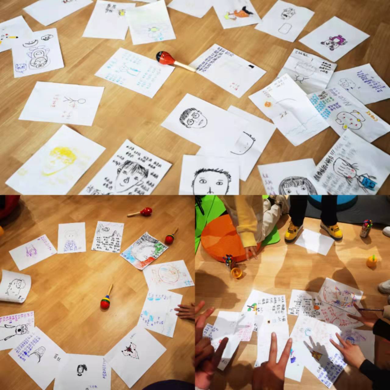 团体辅导之初,潘杨璐以破冰游戏“沙锤传递”活跃团体氛围,拉近成员之间人际距离。然后人数超过15名的团体就以“生日分组”活动,完成团队内小组产生;未超过15名学生的团体以“我今天的名字”活动,促进小组间成员相互认识,增进成员之间的相互了解,相互接纳。之后,以“我的自画像”活动,促成小组间完成画作创作,帮助成员用绘画的形式探索自我;以“20个我是谁”,进一步促使成员用书写的形式发现自我。最后,以“团体的收获”活动,对活动内容和过程进行总结,同时帮助成员表达分离感受,处理离别情绪。活动过程中,成员们热情高涨,积极参与表达与分享,现场氛围热烈。