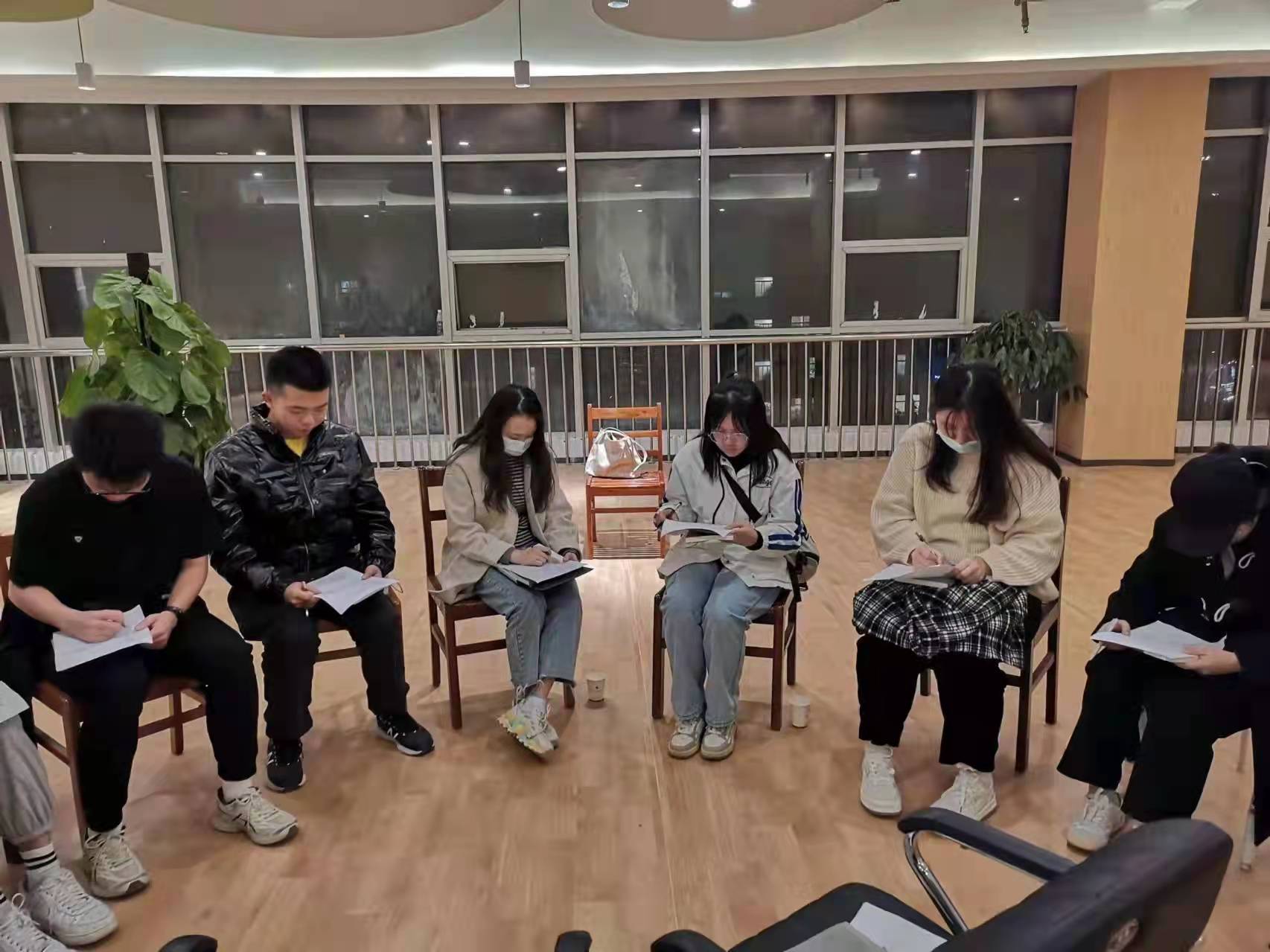 “热爱生命,体味幸福”心理读书会团体辅在茶香袅袅的夜色中拉开序幕。本次团体辅导是积极心理团体辅导第二期活动,由校心理健康教育与咨询中心主办。“热爱生命,体味幸福”心理读书会团体辅由15-20名大学生以自愿报名的形式组成,以书为媒介和载体,旨在促进学生交流分享,探索自我,共同成长。本次活动从11月初开始至今尚未结束,每周1-2次,一共8次,每次2小时。采用线上线下相结合的形势展开,线上采用腾讯会议进行,线下在心理健康教育中心封闭、安静的教室进行。