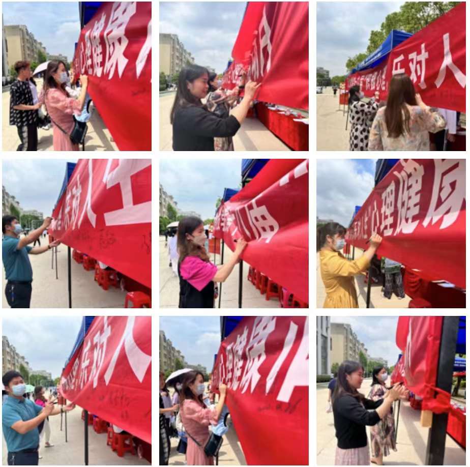 关注心理健康签名:活动开始后,师生员工们纷纷在横幅上认真的签下自己的名字。武汉工程科技学院副董事长王加青、副校长廖璐莎、马克思主义学院副院长高莉、人文学院副院长吴海燕等领导也在横幅上郑重签下自己的名字,呼吁大家要关注自身心理健康,培养心理保健意识,树立正确的心理健康观念,优化心理品质,营造和谐的校园环境。