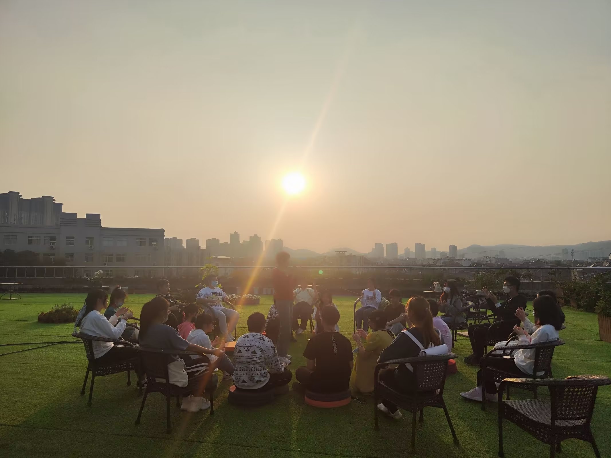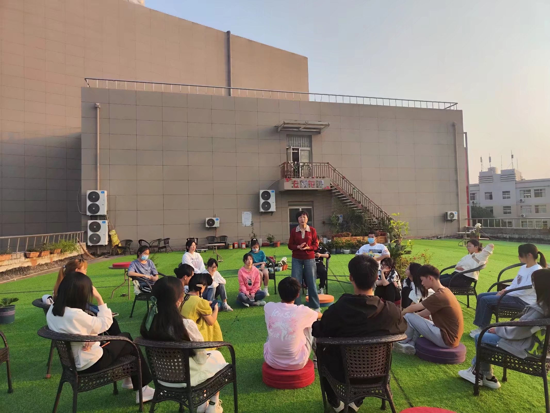 2022年11月9日,下午4点半在图书馆四楼露天花园上举行了五感花园第二期小组活动——快乐生活,互识互助。活动由心理健康教育中心罗新兰老师带领,30多名学生报名参加。罗新兰老师通过“雨点奏鸣曲”让参与者感受情境中的团体变化,体验团队默契的形成;然后在“孤岛求生”环节中让成员发挥各自优势、所长,在活动中相互配合共同完成任务。