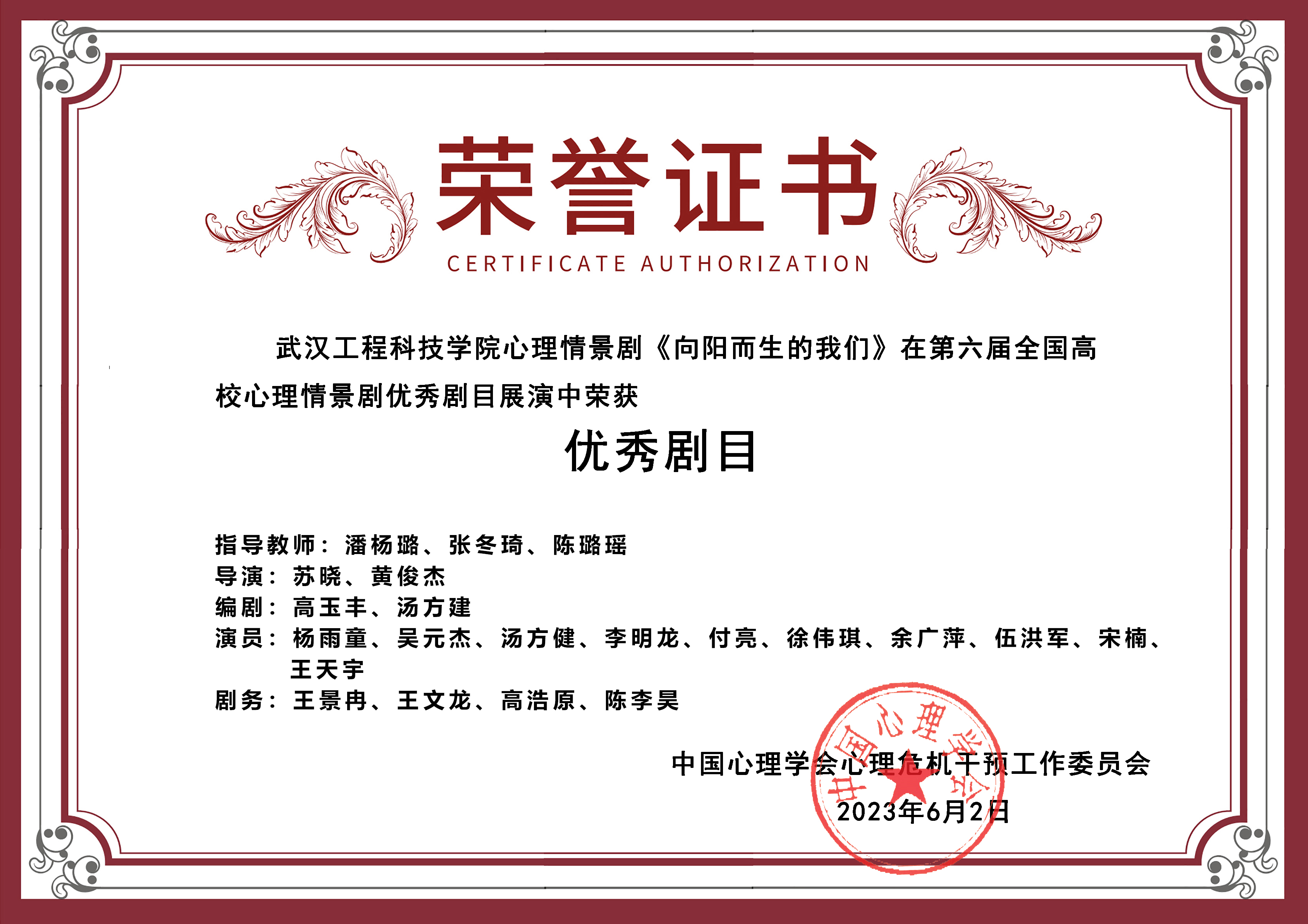 心理情景剧是一种通过演绎日常生活中遇到的焦虑、困惑或压抑等问题,达到释放情绪并最终找出解决心理问题的有效方法。近年来,心理情景剧越来越受到大学生群体的欢迎。第六届全国高校心理情景剧展演活动于2023年4月启动,全国共有283所高校推荐作品参加。经过激烈竞争,我校选送心理剧《向阳而生的我们》在第六届全国高校心理情景剧网络展示中荣获“优秀剧目”称号。