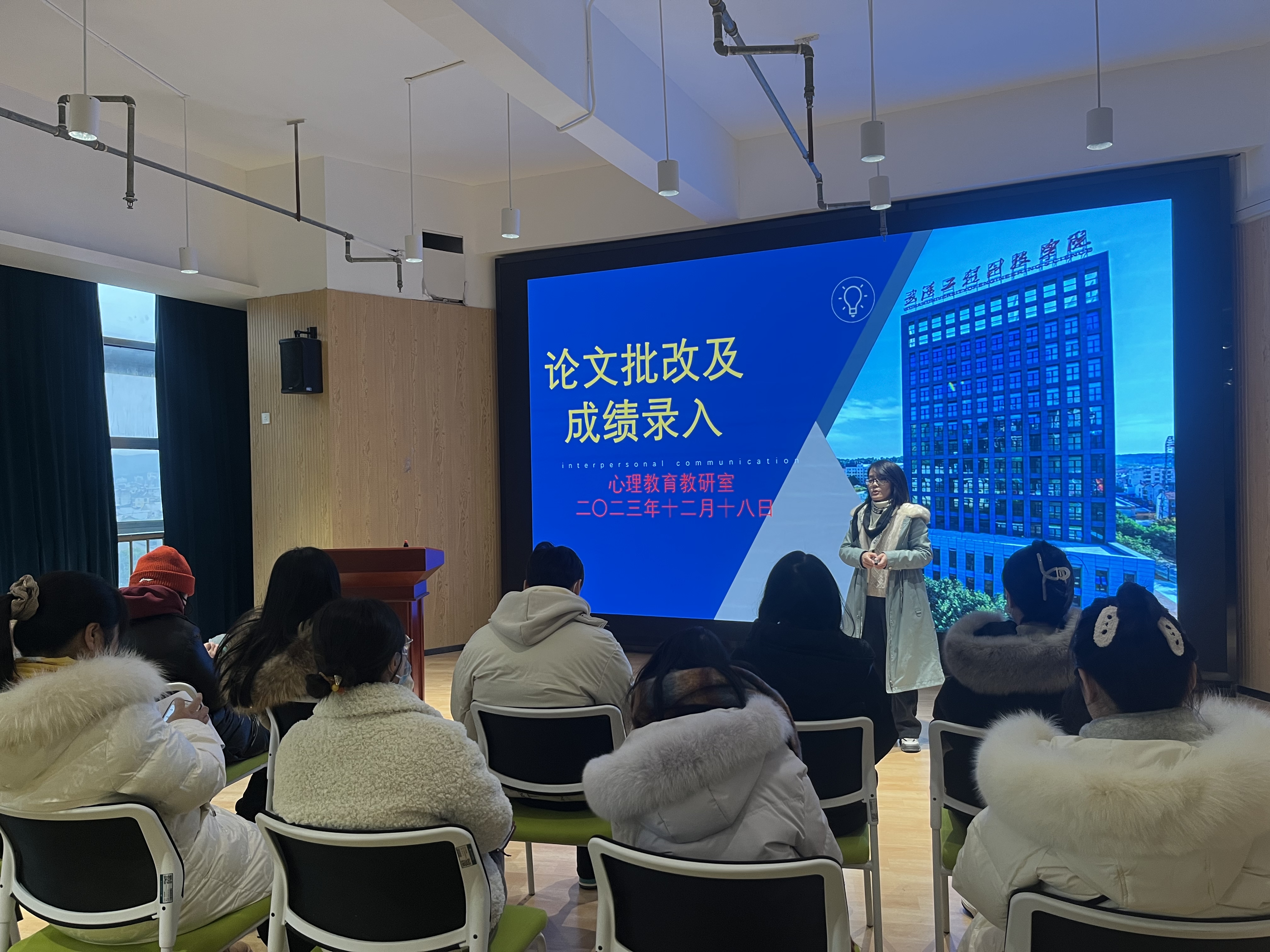 (文/杨梅 图/潘杨璐)12月18日上午,心理健康教育教研室组织召开期末论文批改及成绩录入培训会。课程负责老师杨梅组织培训,全体心理健康教育课程兼职老师参会。