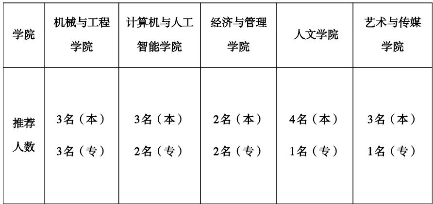 四、各学院推荐名额