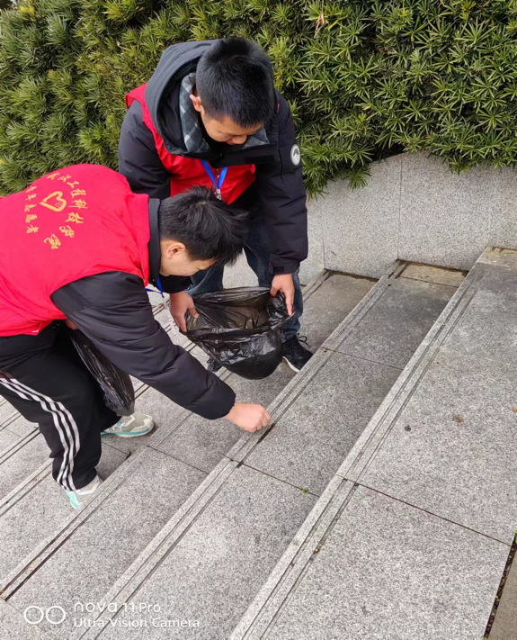 志愿者们手拿扫把、夹子、垃圾袋等卫生工具,发扬不怕脏、不怕苦、不怕累的精神,在校园内清扫落叶、烟头等杂物垃圾。一袭红衣,一个捡拾夹,一把扫把,志愿者们整齐划一,扫净纸屑灰尘,埋头苦干,圆满完成任务。一个个忙碌的身影,为同学们营造了更整洁美好的学习环境,是新时代学习、践行、弘扬、传承雷锋精神的先行者和引领者。