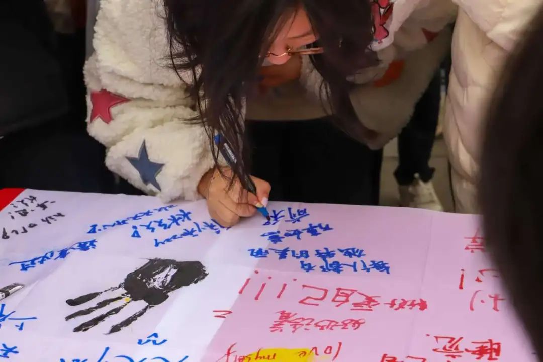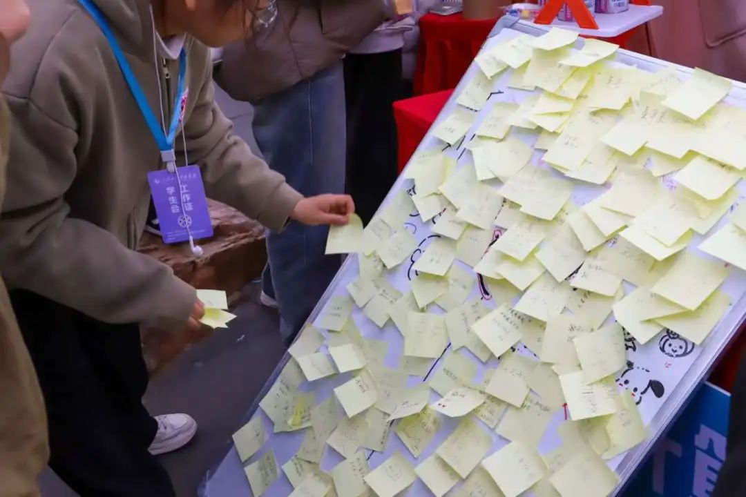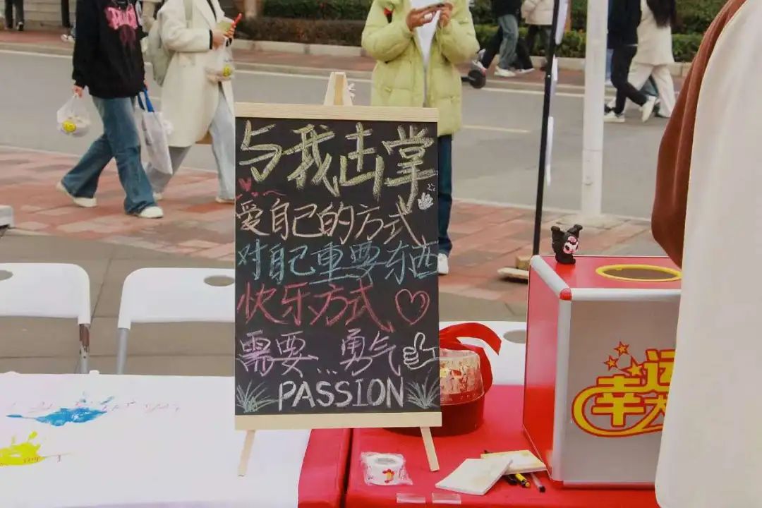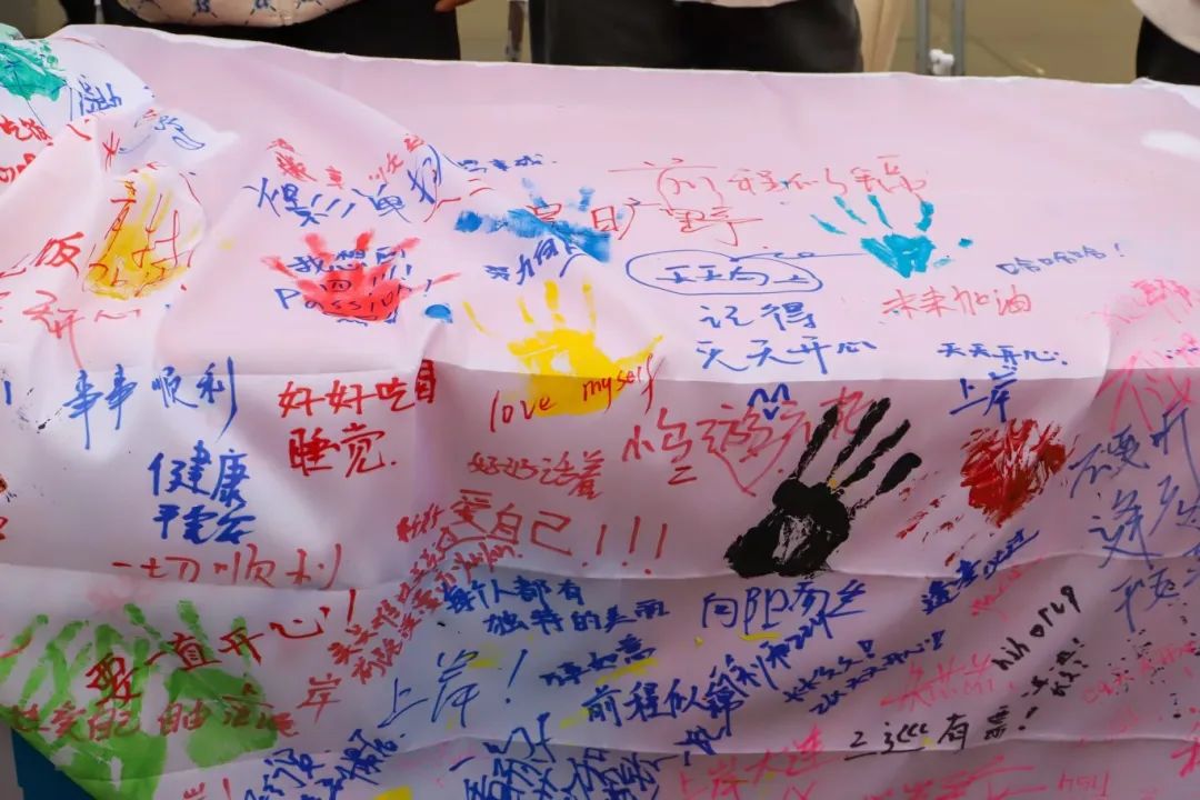 计算机与人工智能学院举办了“与我击掌”的主题活动,鼓励同学们留下多彩掌印与感言,也为同学们提供心愿便利贴以方便写下心里话,帮助同学们抒发内心、勇敢直面自己。同时,他们也为同学们准备了充满仪式感的“小红花”,用于抽奖活动。