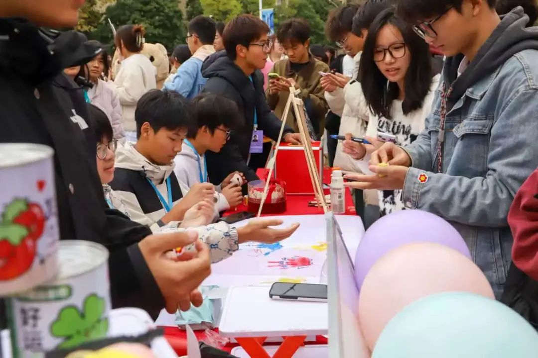 本次活动中,各学院积极开展丰富的创意活动,吸引众多师生参与,现场人潮拥挤,热闹非凡.