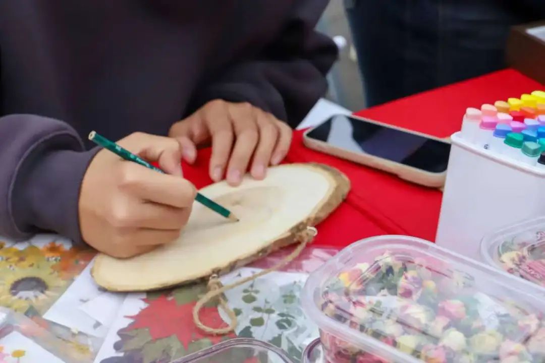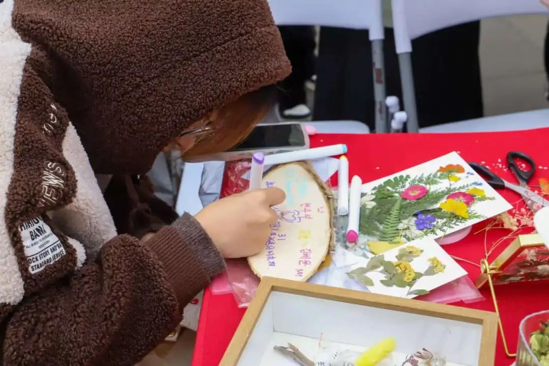 机械与工程学院分别设置了“花样时光,定格美好”和“金色斑斓,邂逅秋光”两个活动。“花样时光,定格美好”中,同学们积极选择自己喜欢的植物标本,搭配颜色,着手个人创作,用相框定格美好瞬间。“金色斑斓,邂逅秋光”中,同学们发挥想象,在空白门牌上绘画创作,用故事传递温暖,用创意点亮生活,留下属于秋日的记忆。