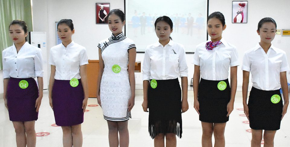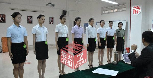 201610月12日,气温骤降,首都航空公司前往武汉工程科技学院公开招聘,挑选空中乘务员。寒冷的天气里,来自武汉市各高校的男女大学生们身着夏季制服,面带微笑,站得笔直,参与第一轮面试。航空公司对应聘者身高、妆容、服装等方面的严格要求。记者在面试现场记者看见航空公司,不允许带隐形眼镜、框架眼镜,有没有纹身,面试官还会仔细查看是否割过双眼皮等细节。 链接:http://pic.chinadaily.com.cn/2016-10/13/content_27051591_4.htm