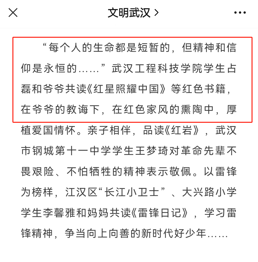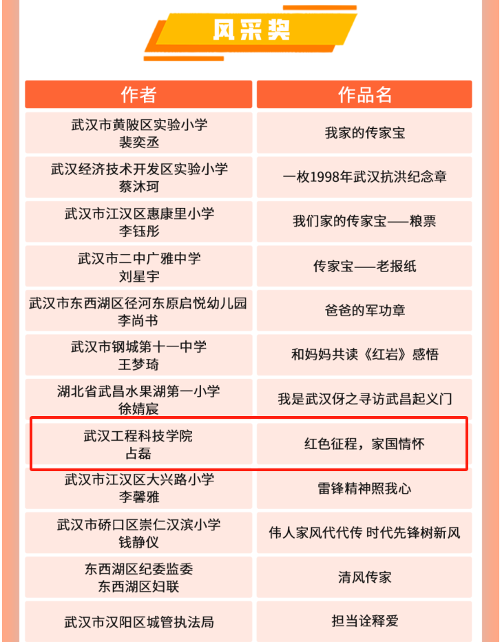 在众多作品中,我校学子作品通过浓厚的文学底蕴与才华能力获得入选,同时也被武汉市委宣传部公众号“文明武汉”文字报道。据悉,江夏区仅有两部作品获此殊荣。