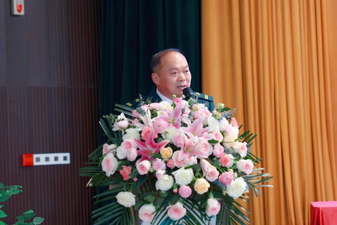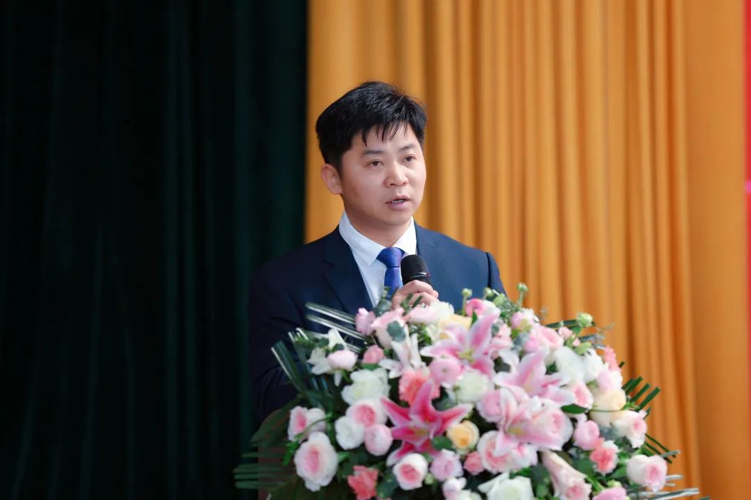 湖北省教育厅体卫艺处处长丁雪峰致辞。他首先对武汉工程科技学院社会公益学院的成立表示热烈的祝贺,向长期以来从事社会公益服务活动的全校广大师生致以崇高的敬意。他表示,武汉工程科技学院成立社会公益学院是全面贯彻党的教育方针、落实立德树人的基本要求,也是弘扬高等教育服务功能的重要举措。长期以来,武汉工程科技学院党委全面贯彻党的教育方针,不断深化社会公益事业改革,努力打造社会公益十大品牌,取得了突出成绩,赢得了良好的社会声誉,武汉工程科技学院已成为我省高等教育率先进行社会公益化创新的鲜艳旗帜。他指出,大力推进高校社会公益事业发展是一项功在当代、利在千秋的崇高事业。近年来,湖北省委省政府高度重视高等教育改革发展,不断强化高等教育的社会功能,出台一系列推进高校社会公益事业改革发展的政策措施,这一切为高等教育社会公益事业的改革发展提供了十分广阔的空间。他提出,要进一步高举社会公益化的旗帜,抢抓机遇、乘势而上、协同创新,奋力谱写新时代武汉工程科技学院社会公益化事业改革发展的新篇章。