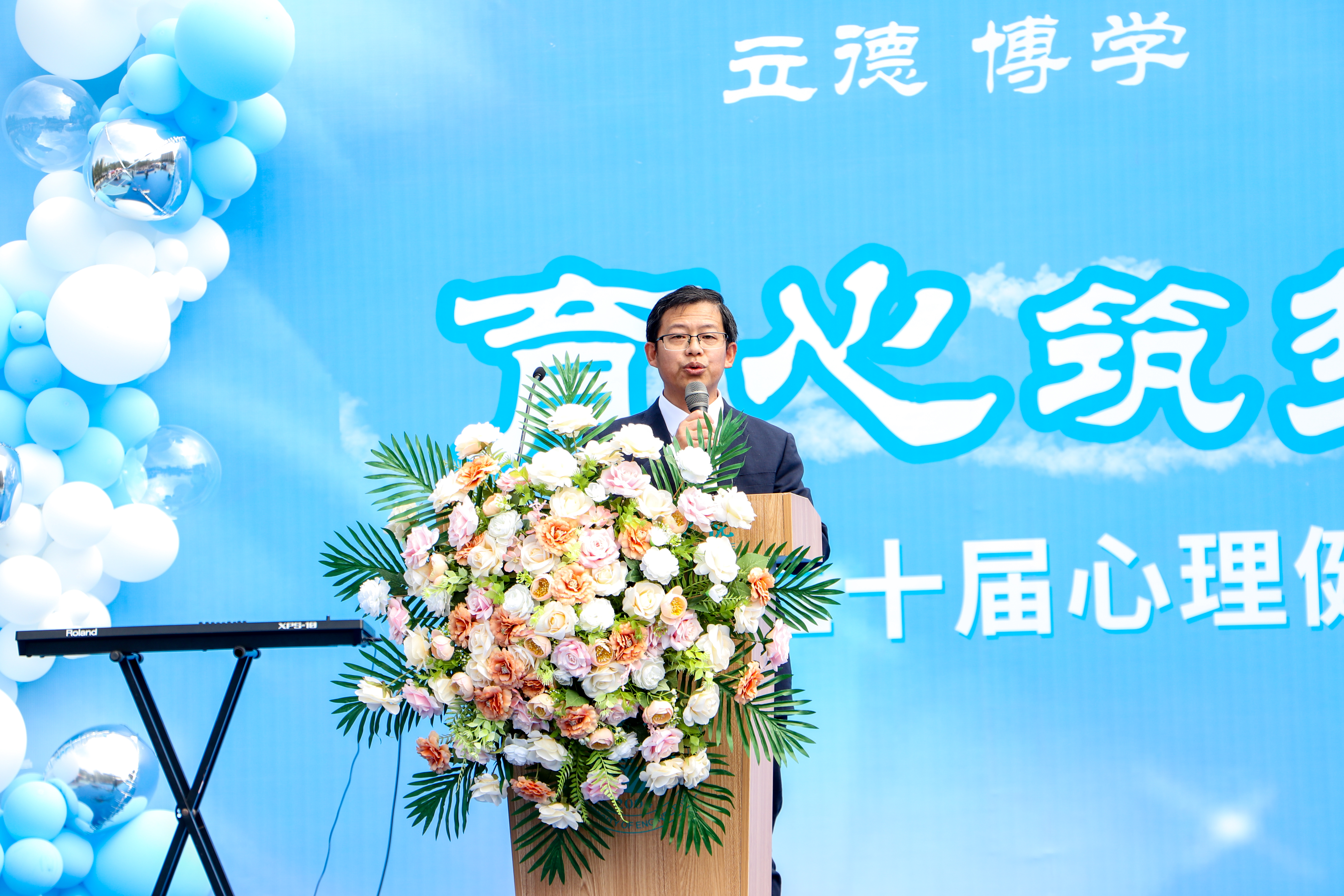 大学生心理健康教育中心主任李毅对本次心理健康教育活动月进行介绍。他指出,此次活动旨在促进学校美好社区建设,加强学生自主维护心理健康的意识和能力。学校提供了多方面、全方位、沉浸式的心理健康活动,加强学生对心理健康知识的认识,提升学生的意志品质,营造积极健康的心理氛围。他希望,通过各方面的通力协作,可以为全体师生构建健康快乐的学习生活环境,为学校心理健康教育工作贡献力量。