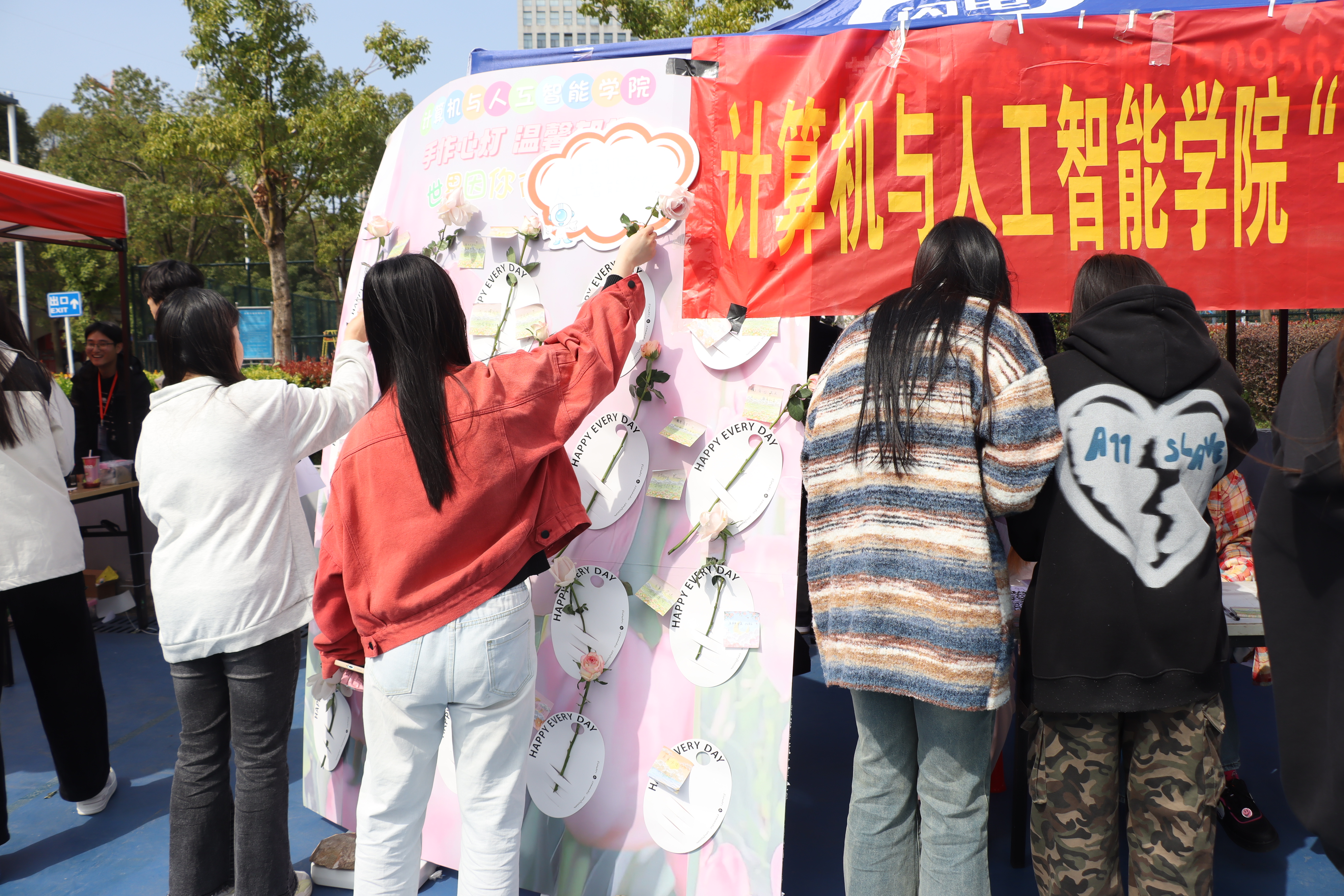活动现场气氛活跃,广大师生踊跃参与现场的“观‘心’送花香”活动,体验插花的乐趣。在“春眠知多少”活动中,学生们积极上台展示“八段锦”。各学院也积极开展了各自的创意活动:机械与工程学院开展“与焦虑和解,与热爱同行”活动,学生们在“粘贴坏情绪”留言板上积极留言;计算机与人工智能学院开展“手作心灯