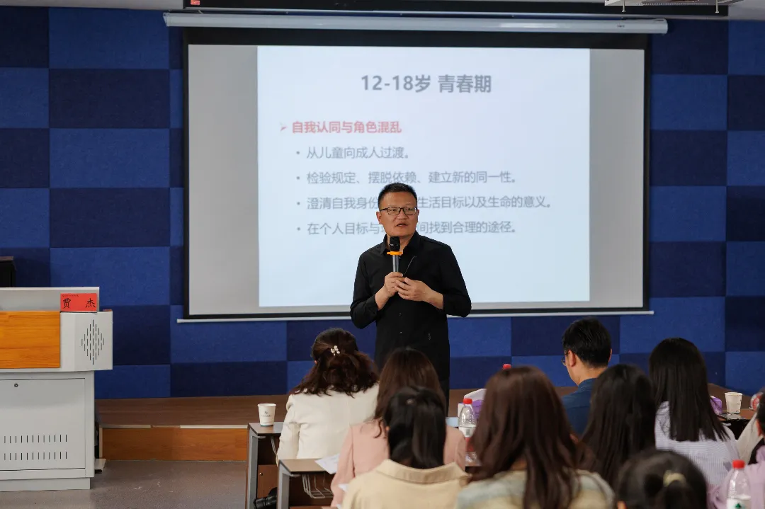 紧接着,贾杰详细阐述了人心理发展的三段论,即童年期、青春期和成年期的心理变化特征及其潜在的挑战。他指出,把握这些关键阶段的心理特点,对于预防和妥善处理学生的心理问题具有重大意义。他表示,作为老师,虽然不能决定学生的未来,但可以为他们提供选择生活方式的智慧,引导他们成为有责任感、有担当的人。他建议,辅导员们在与学生交流时,要深入分析他们的心理状况,帮助学生权衡当下的痛苦与未来可能面临的风险,教会他们如何做出明智的选择。同时,他还从努力赢得他人赞赏,期待他人以期望方式对待自己,设定目标必须达成这三种“必须”心态讲述了该如何纠正大学生心理问题。最后,贾杰通过举例,深入浅出地阐释了自卑并非软弱或异常的体现,并鼓励大家去珍惜、去维系那些对自己有重要意义的关系。