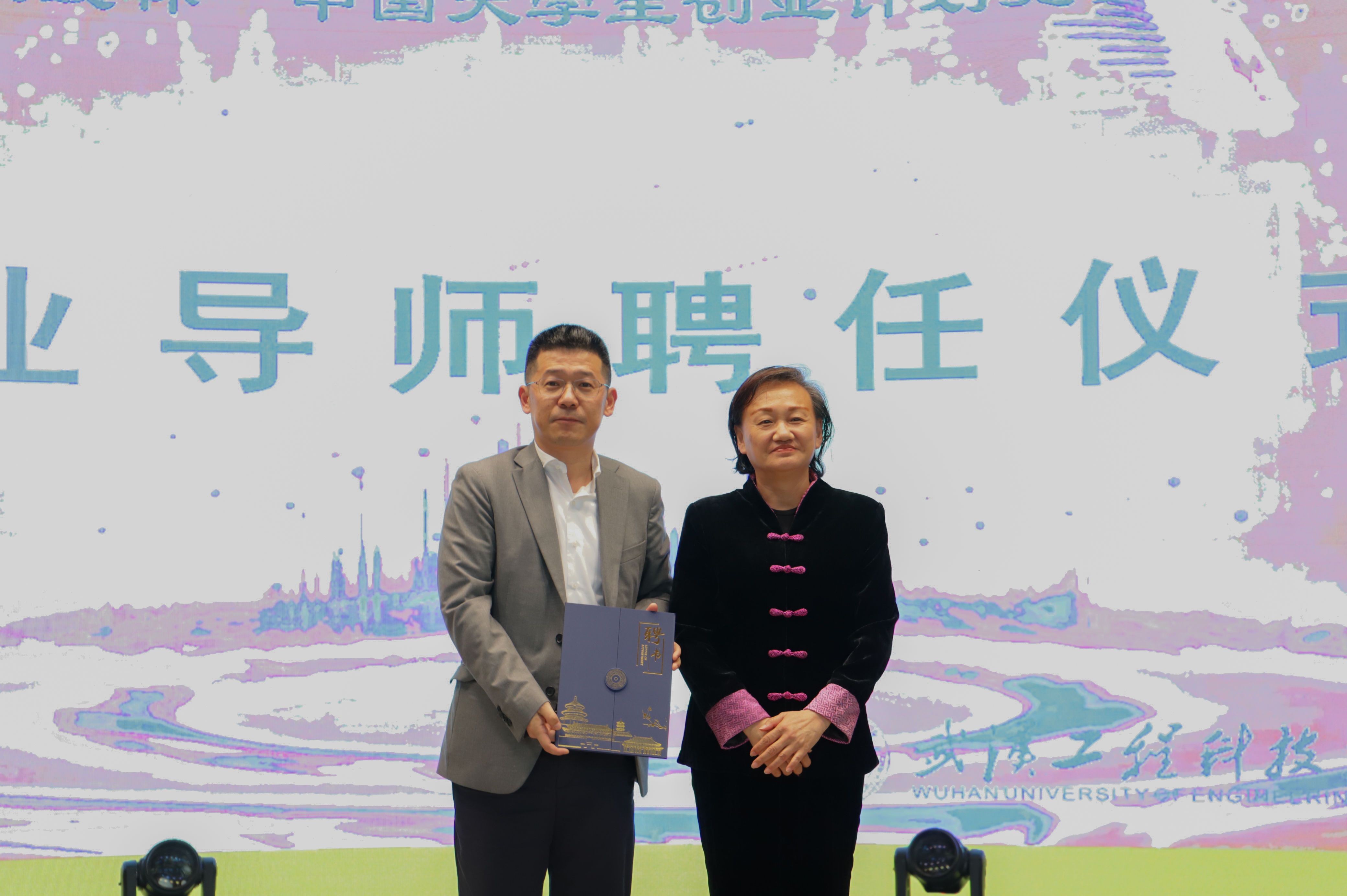 大会伊始,高芸为孙琦琳颁发武汉工程科技学院创业导师聘书。