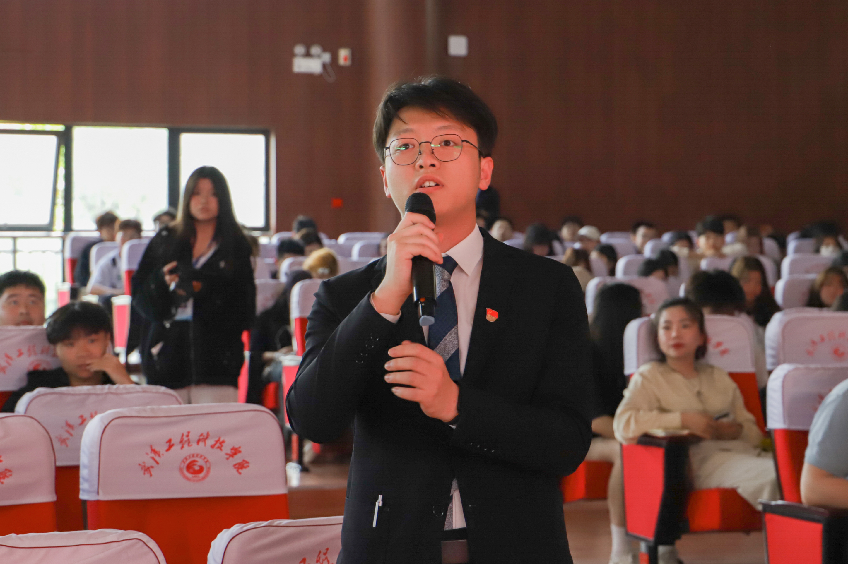 2020级工程造价专业的王潇龙作为学生代表发言。他从初步准备、选择方向、核心问题等三个方面分享了备赛心得体会。他建议,在初步准备阶段,可以从学校的创新杯开始,积累经验,再去挑战规模更大的竞赛;要重视项目方向的选取,发现问题比解决问题更重要;要敢于尝试、面对、发言和发光,将所学知识与现实需求结合,形成有竞争力的项目。此外,他还提到了交流的重要性,希望大家多与老师和同学沟通交流,听取建议,优化项目。最后,王潇龙祝愿各位选手在后续比赛中取得优异成绩。