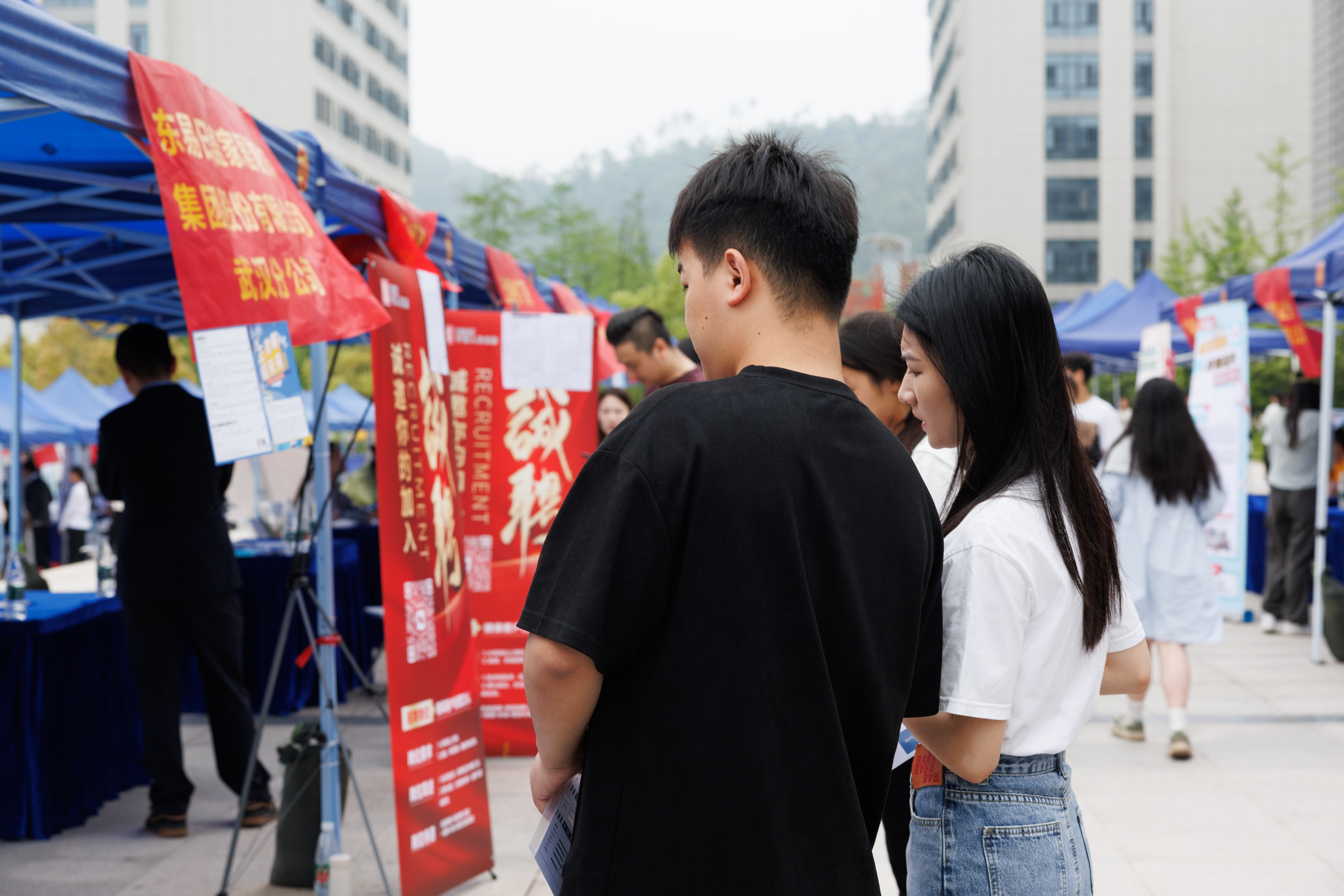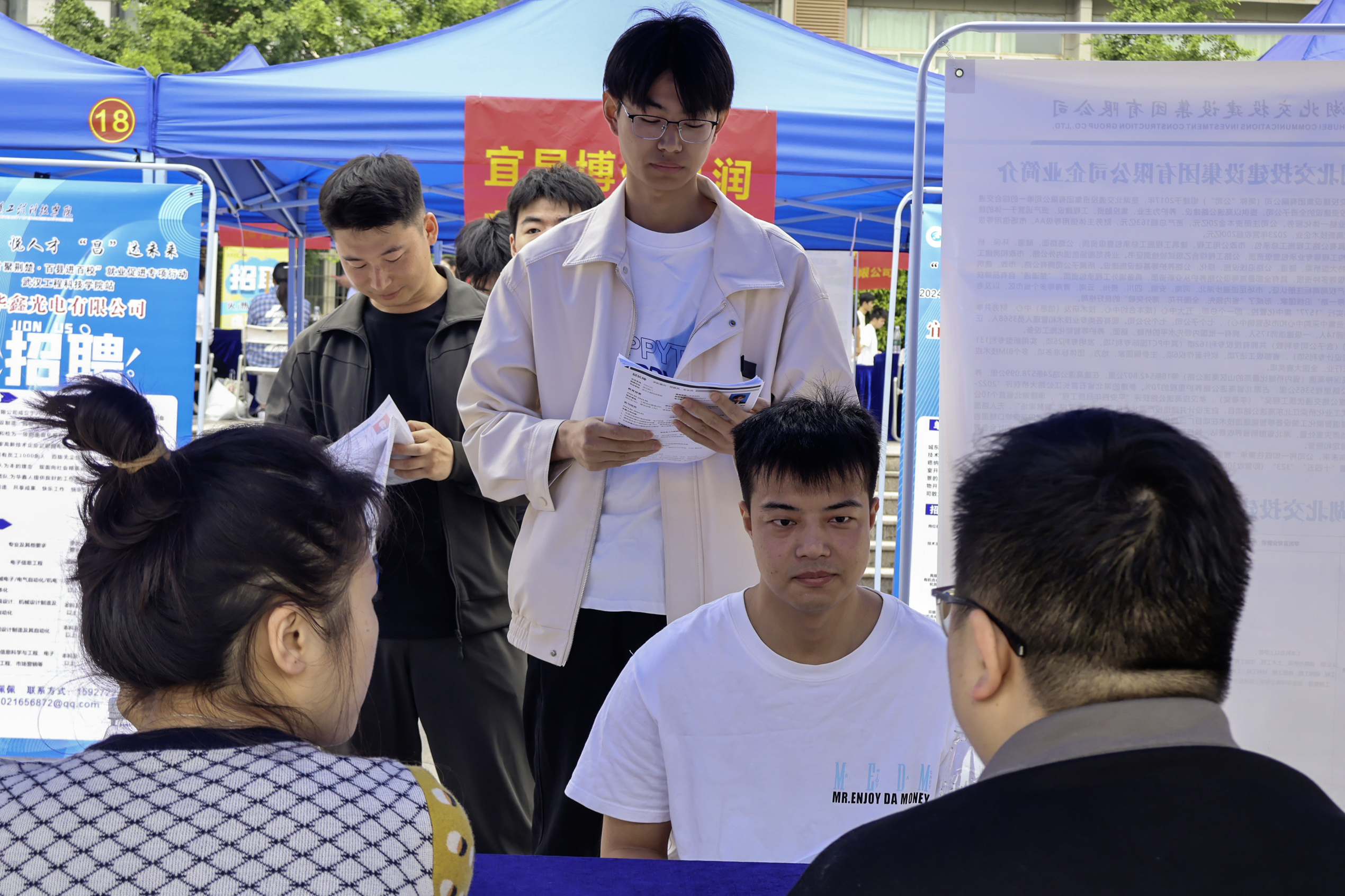 本网讯(大学生记者闫亚萌 经欣桐 摄影隆珺羽 黄梓娴 李佳琦)4月25日上午,2024年“湖北百校联动”暨“百县进百校”武汉工程科技学院专场招聘会在学校东北门阶梯广场举行。本次招聘会汇聚了近150余家企业,涉及工程技术、行政管理、机械一体化、新媒体传播等领域,为我校毕业生提供了3500余个岗位,吸引了我校众多毕业生前来应聘。