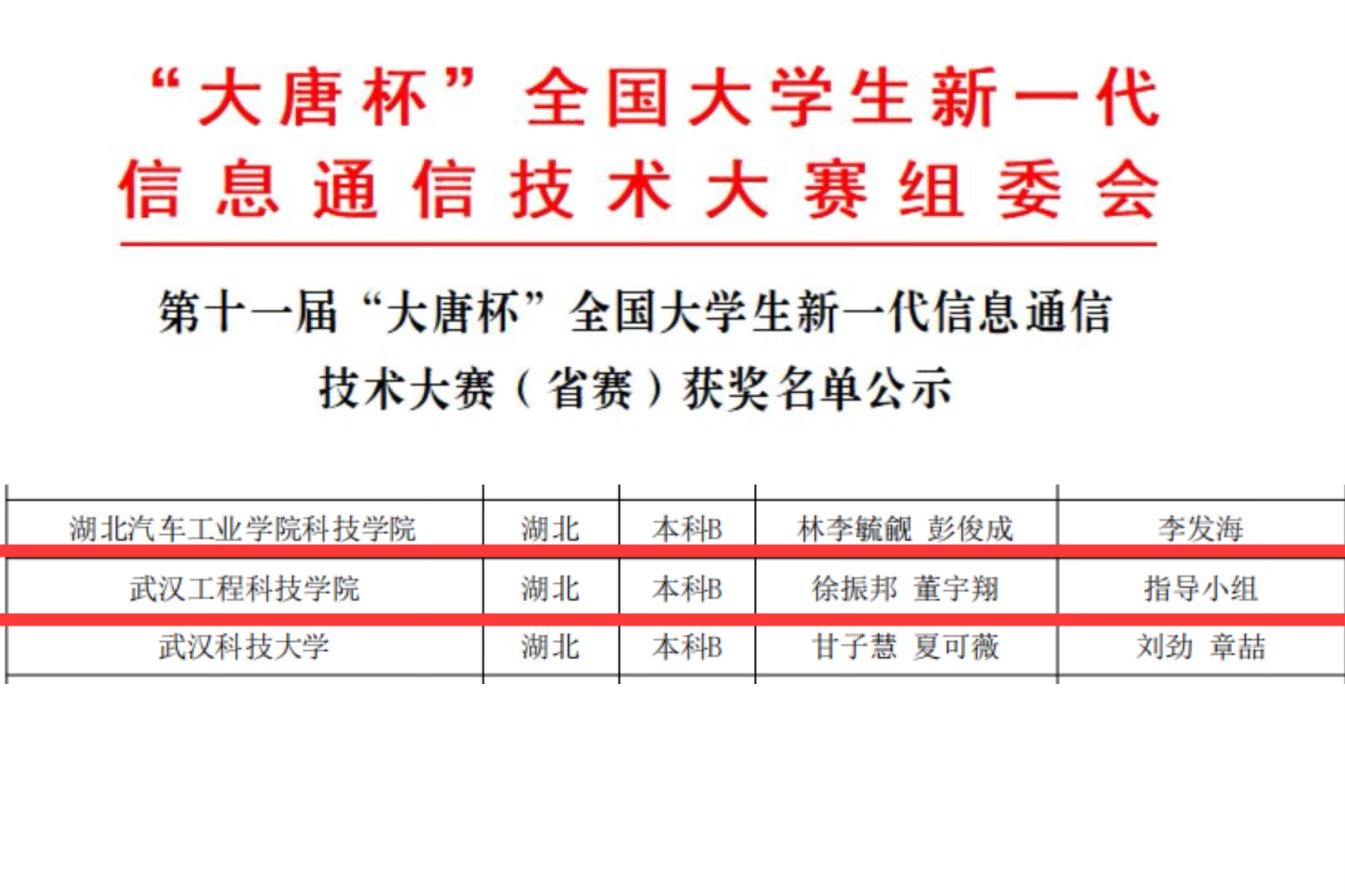 喜报!武工院学子在“大唐杯”全国大学生新一代信息通信技术大赛喜获省赛一等奖