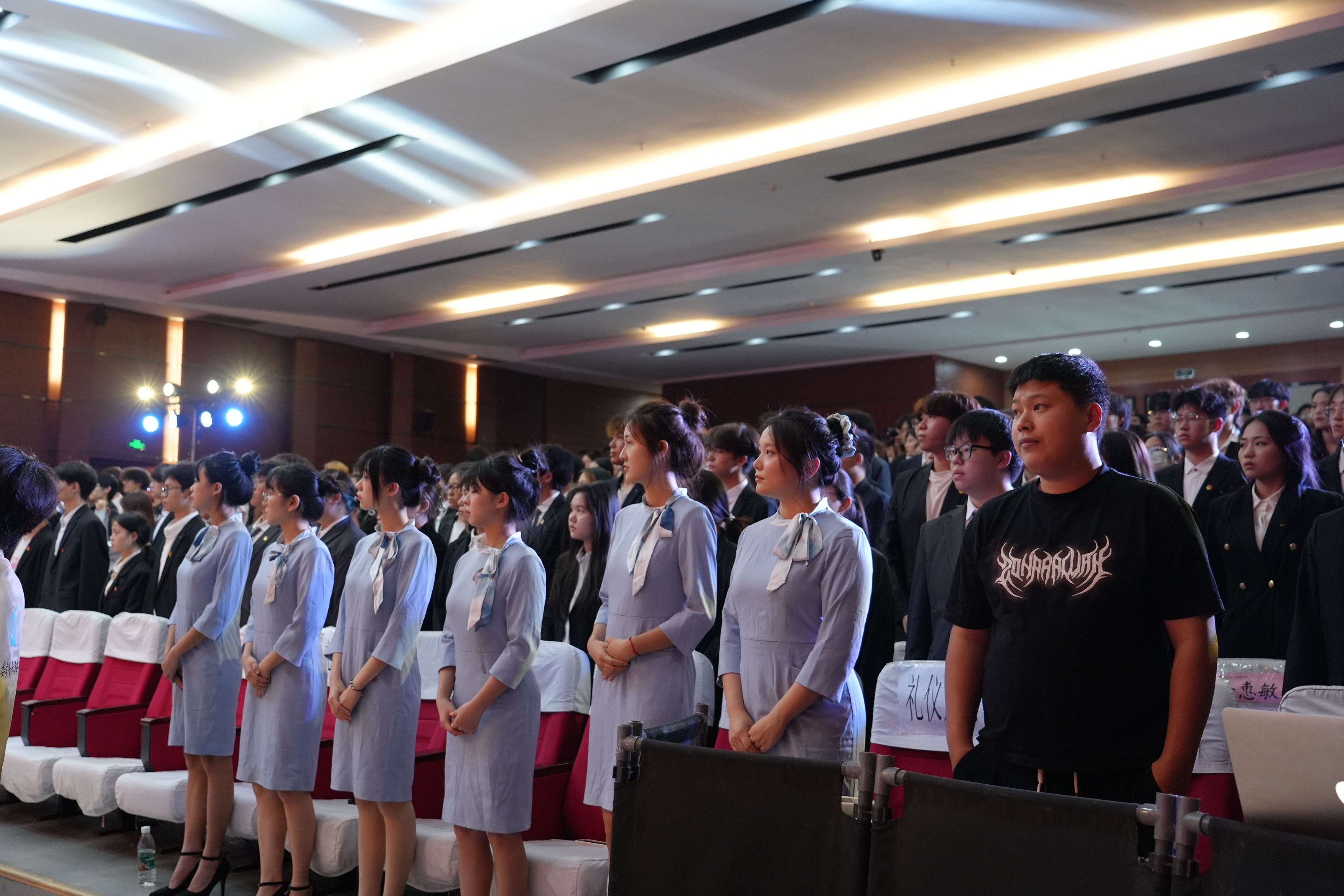 看啊,舞者们如同夜空中的星辰,闪耀着光芒,他们迈着轻盈的步伐缓缓向我们走来,在旋律中提起裙边翩翩起舞。每一个转身,都展现着我们青年一代的生机与激情,每一个摆动,都让我们感受到青年一代正与国际接轨的精神氛围。吾辈青年,风华正茂!
