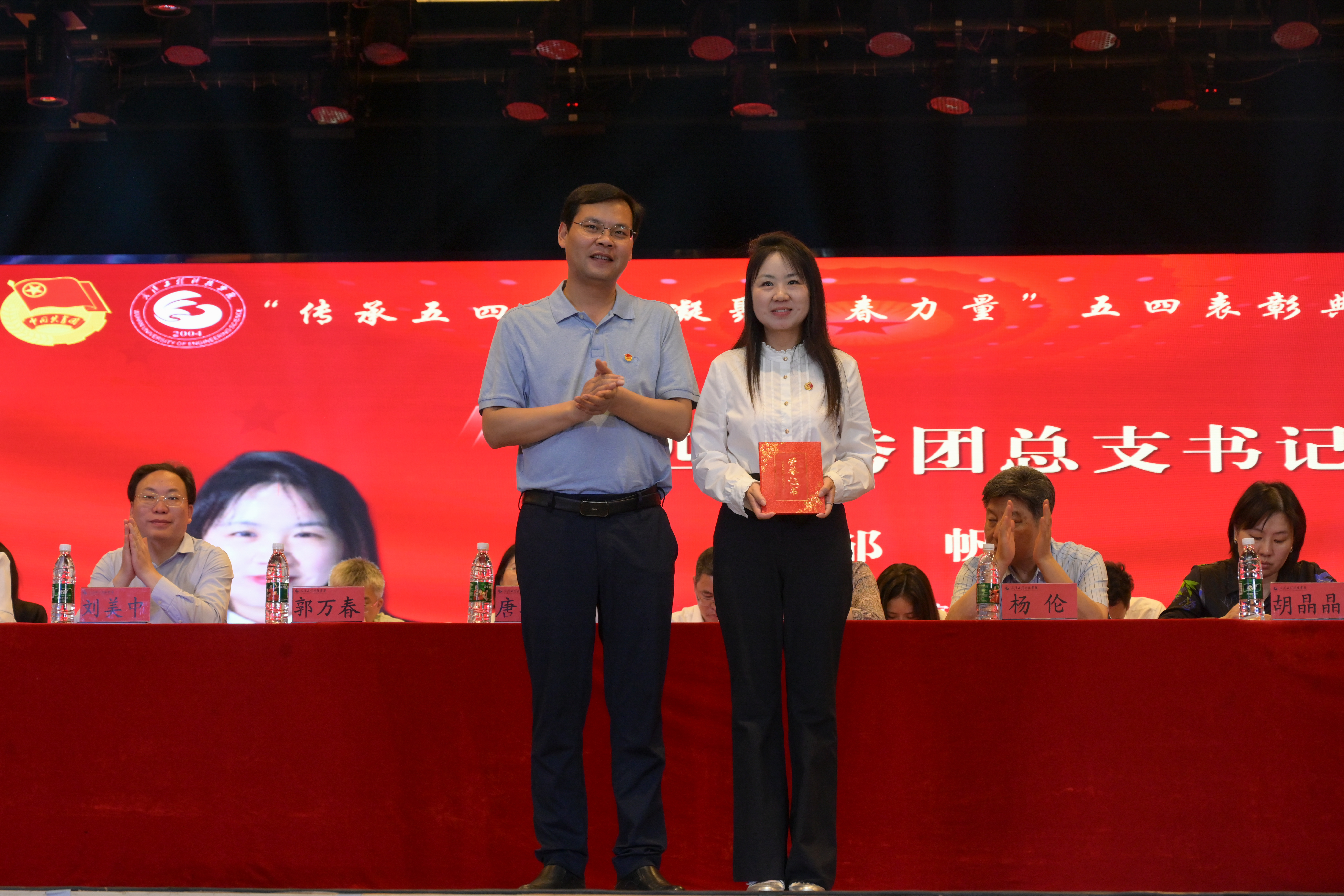 党委常委、校长助理郭万春为五四优秀团总支书记颁奖