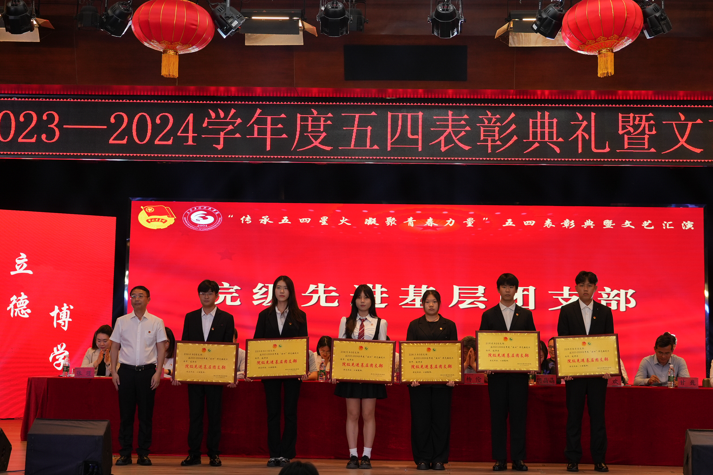 学校党委副书记、校长助理唐军国宣读《关于表彰2023—2024学年度“五四”先进集体和先进个人的决定》。