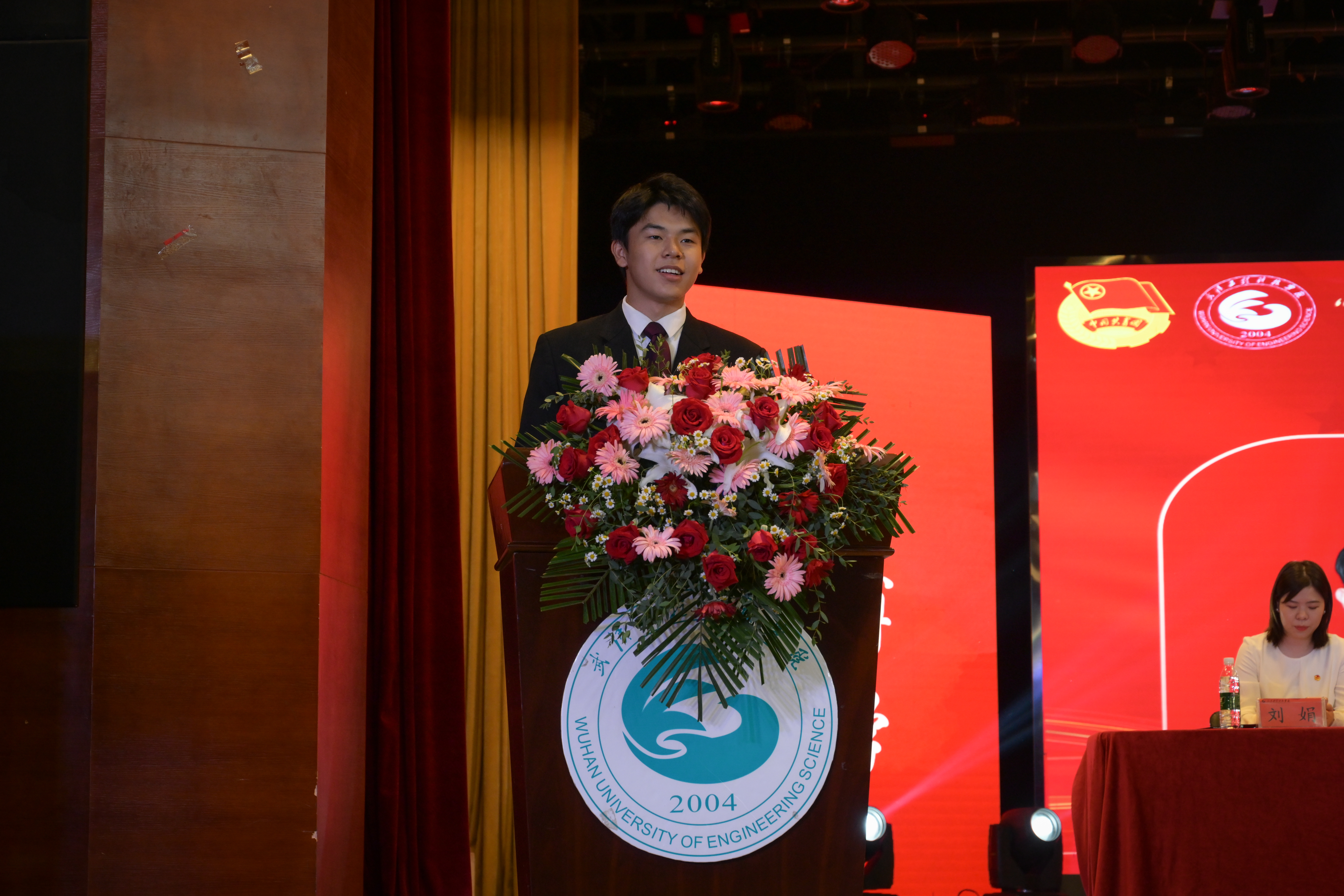 2021级社会体育指导与管理专业黄浩然作为五四青年学生代表发言。他首先代表受表彰的先进团体和优秀个人向学校领导和老师表示诚挚的感谢,他回首了过去一年忙碌而充实的经历,并建议武工院学子要怀揣理想,争做新时代的“追梦者”;要甘于奉献,做好新时代的“奋斗者”;要勇于担当,成为不负使命的“圆梦者”。