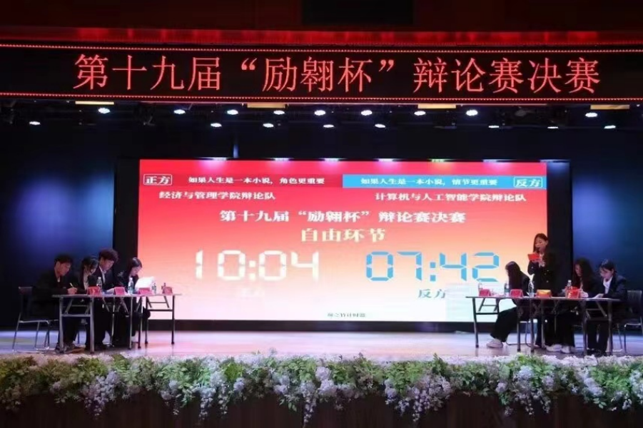 本网讯(通讯员 陶歆雅 刘思琦 安雨轩)5月9日,武汉工程科技学院第十九届“励翱杯”辩论赛决赛在三教报告厅精彩上演。计算机与人工智能学院和经济与管理学院从小组赛中脱颖而出,闯入决赛,决赛围绕着“如果人生是一本书,角色更重要还是情节更重要”这一辩题展开激烈的辩论。