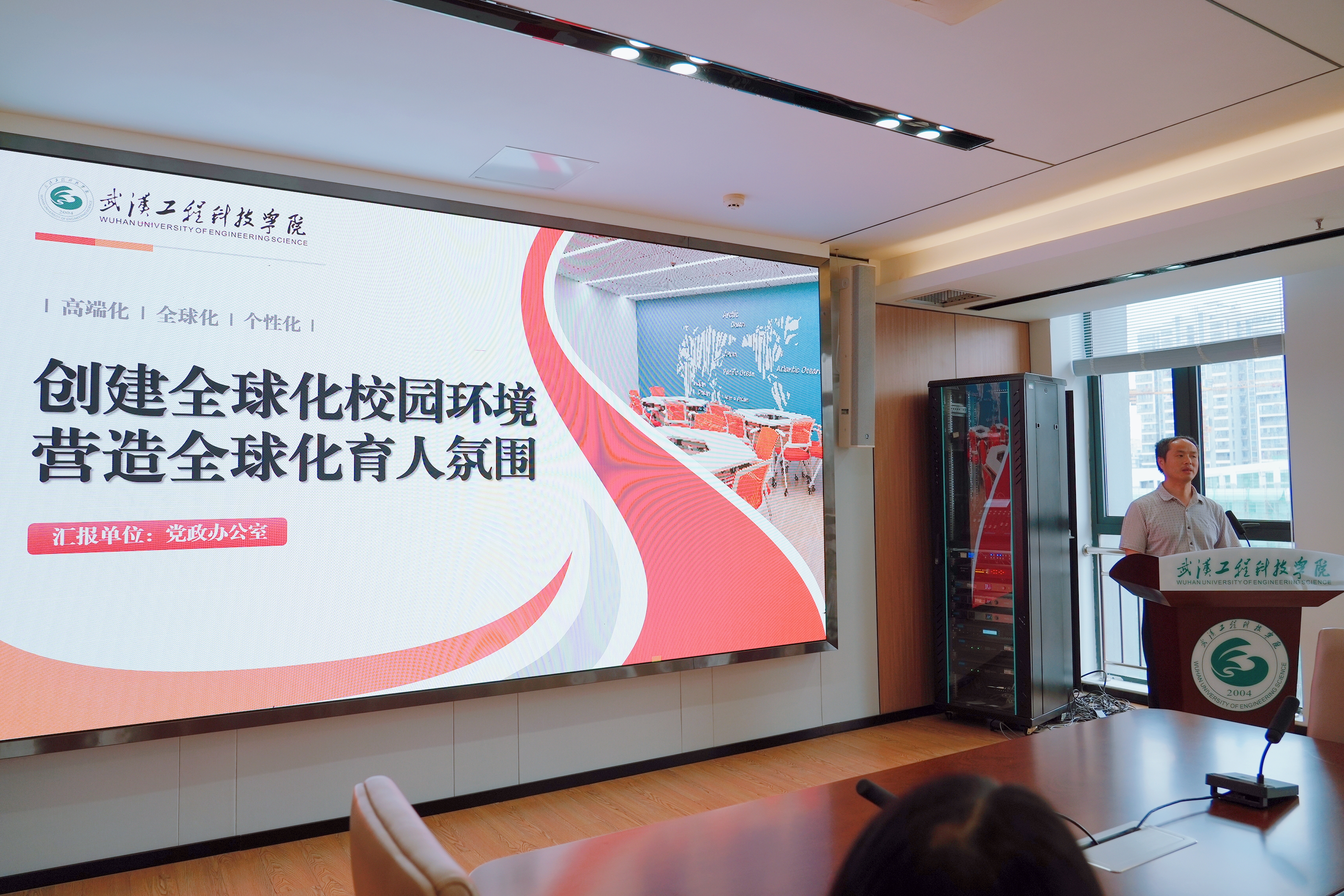 为践行“高端化 全球化 个性化”的办学理念,营造良好的全球化办学氛围,打造一流的全球化育人环境,提升学校全球化教育影响力,培养具有家国情怀与国际视野的应用型人才,5月10日上午,武汉工程科技学院全球化环境建设工作推进会在综合楼1210会议室召开。学校副董事长、党委副书记、常务副校长王加青,党委副书记、校长助理唐军国,党委常委、校长助理胡晶晶,党委常委、校长助理赵欢出席会议,相关职能处室负责人参加会议并作方案汇报。会议由党委常委、党政办公室主任刘美中主持。
