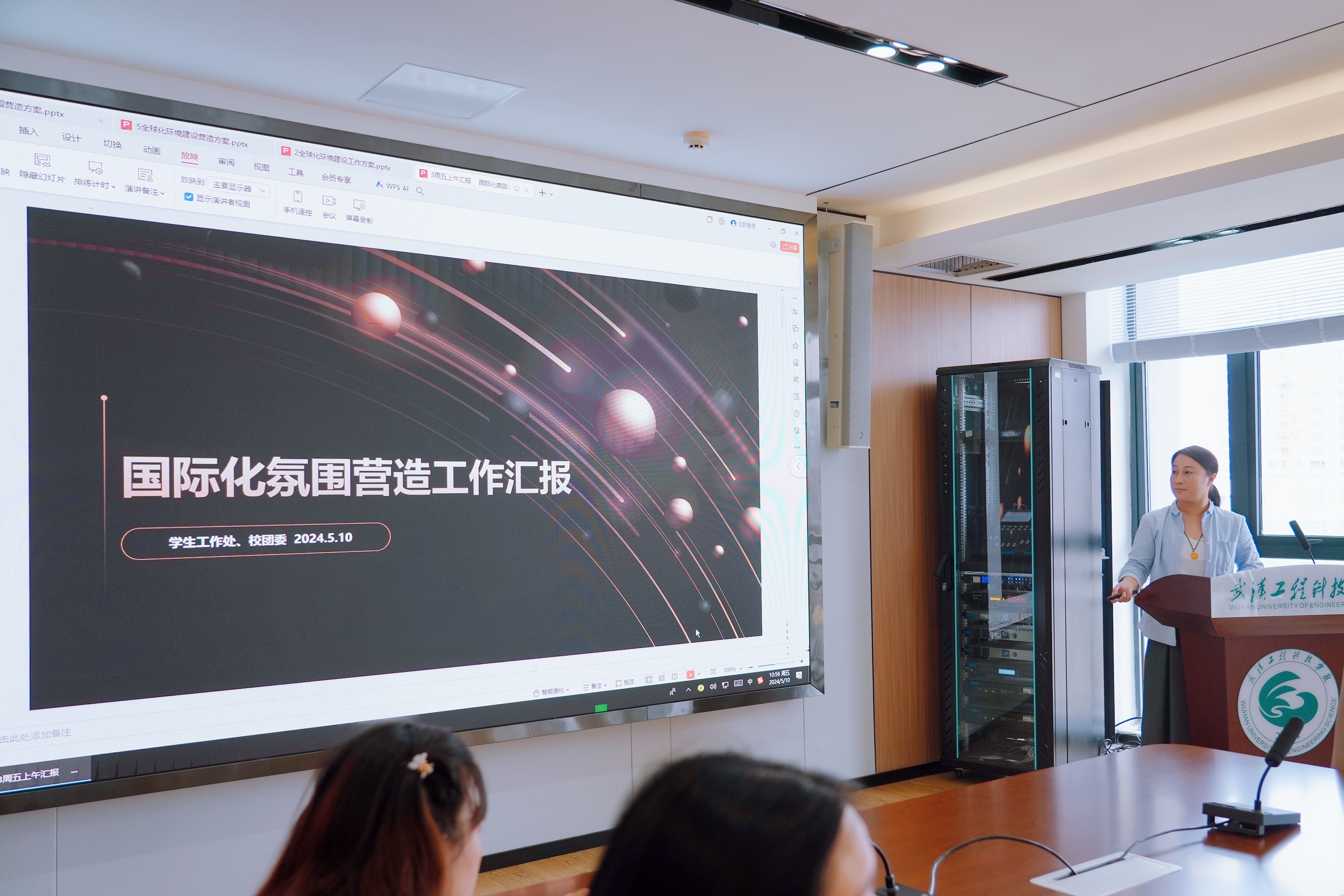 会上,党政办公室、国际教育学院、学生工作处、教务处、招生办公室、图文信息中心、后勤保卫处依次作全球化校园环境建设方案汇报。汇报中,各职能处室从硬件设施和校园环境、教学活动与课程设置、合作院校资源、学生活动与社团组织、国际化服务与支持、线上线下宣传等多个方面提出了优化建议和建设方案,并表示,将群策群力,协同推进方案落实落细,充分发挥环境育人功能,全面营造良好的全球化办学氛围。