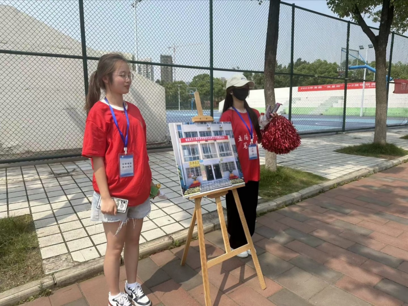 胡晓峰、胡美玲为活动授旗,盛鸿浩、张洋洋、邓伟豪、金丽四位同学接旗。