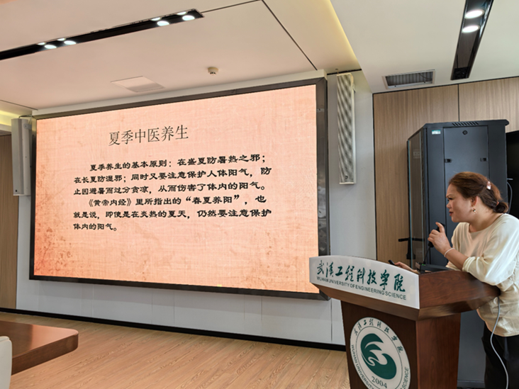签约仪式结束后,针灸科副主任刘冬桂以《中医夏季养生》为主题进行中医养生专题讲座。刘冬桂从中医养生的概念、夏季中医养生、夏季中医养生之衣食住行及夏季中医养生之药四个维度进行了丰富的讲解。