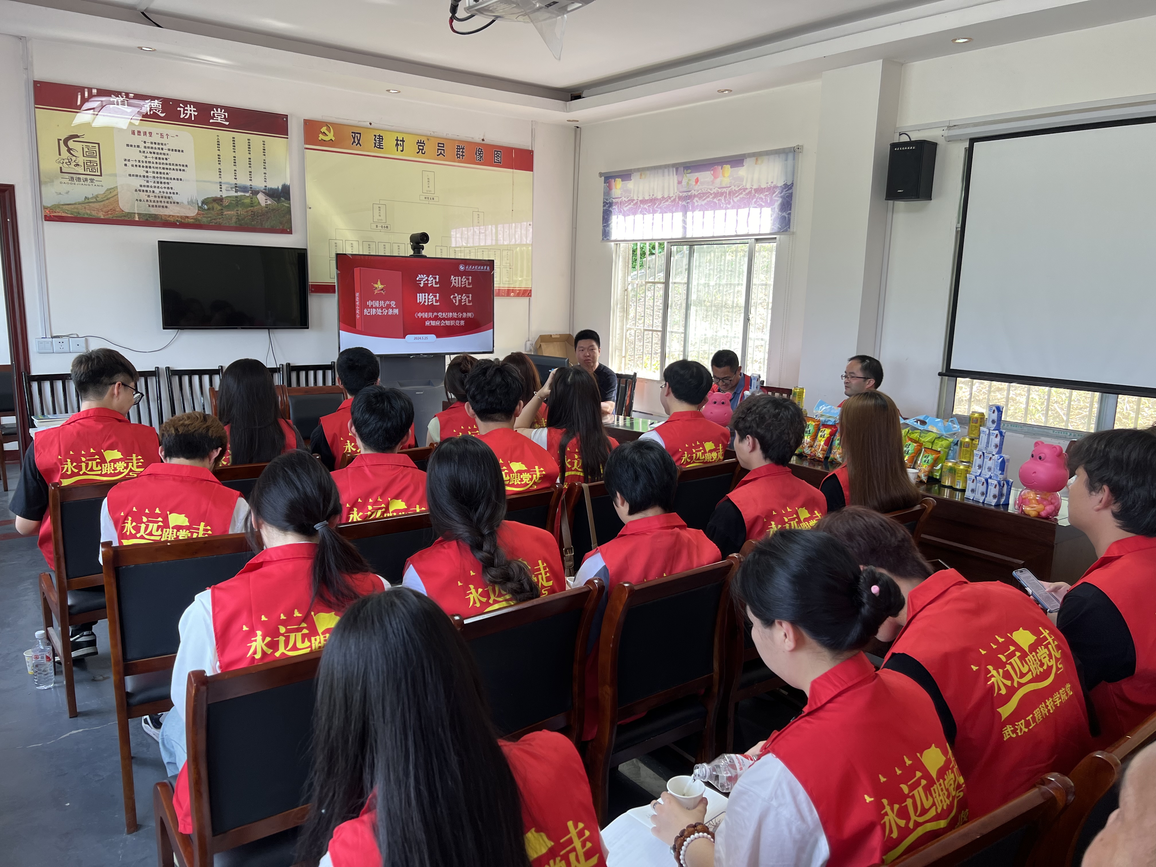 25日下午,实践教育团队在双建村村委会议室开展了一次别开生面的党纪知识专题学习。本次学习通过应知应会知识竞赛的形式展开,学校纪委副书记吴夏通过既严肃又活泼的语言,很好调动了同学们的答题积极性,大家在一个个与生活密切相关的问题中学习、回顾新修订的《中国共产党纪律处分条例》知识点,五支答题小组圆满完成了学习任务。学员们还听取了我校驻村工作队第一书记(工作队长)程林以乡村振兴为主要内容的党课。