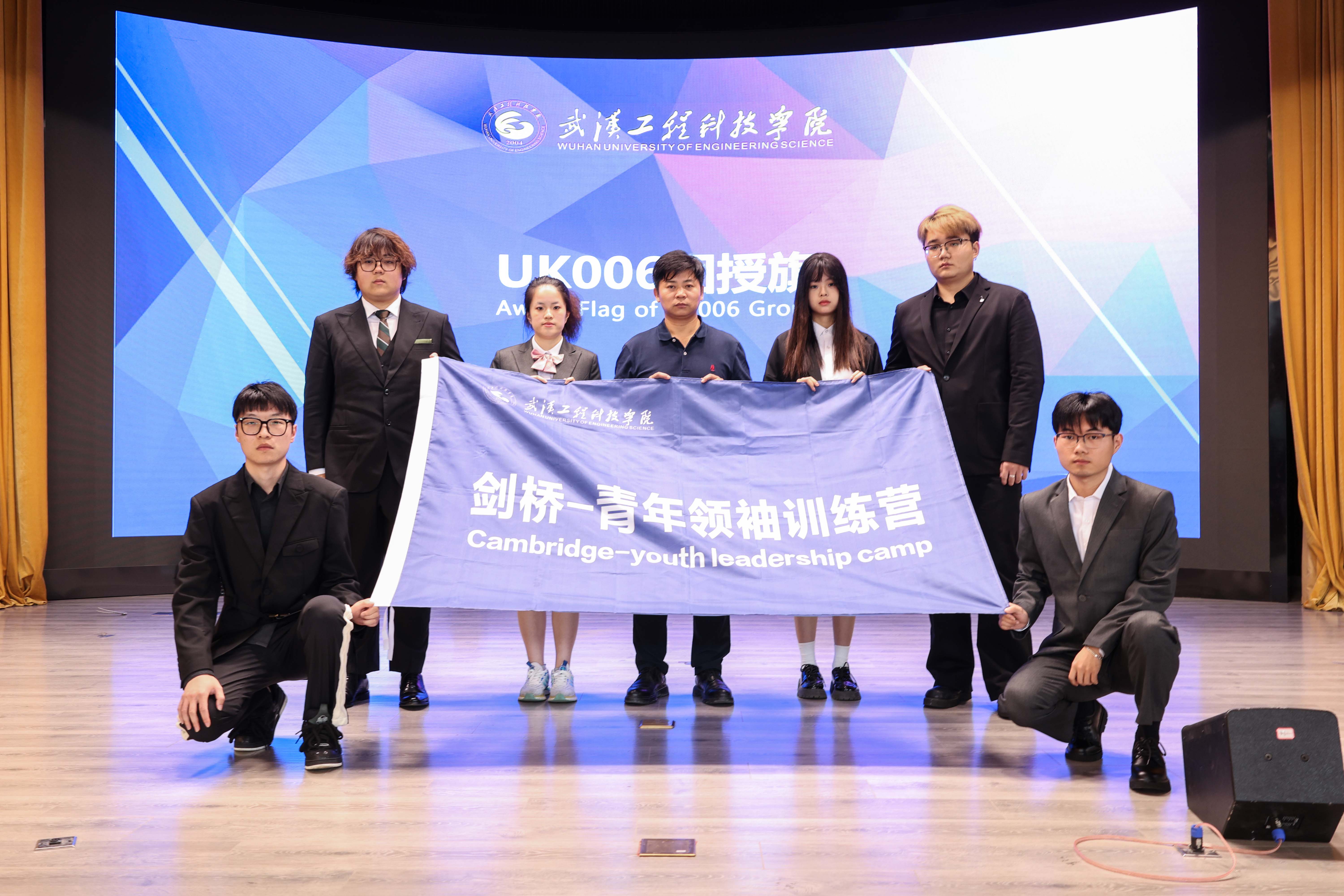 王加青将象征荣誉与责任的“剑桥—青年领袖训练营”UK006团旗帜授予学生代表,预示着我校UK006团的青年领袖们的剑桥之旅正式启航。