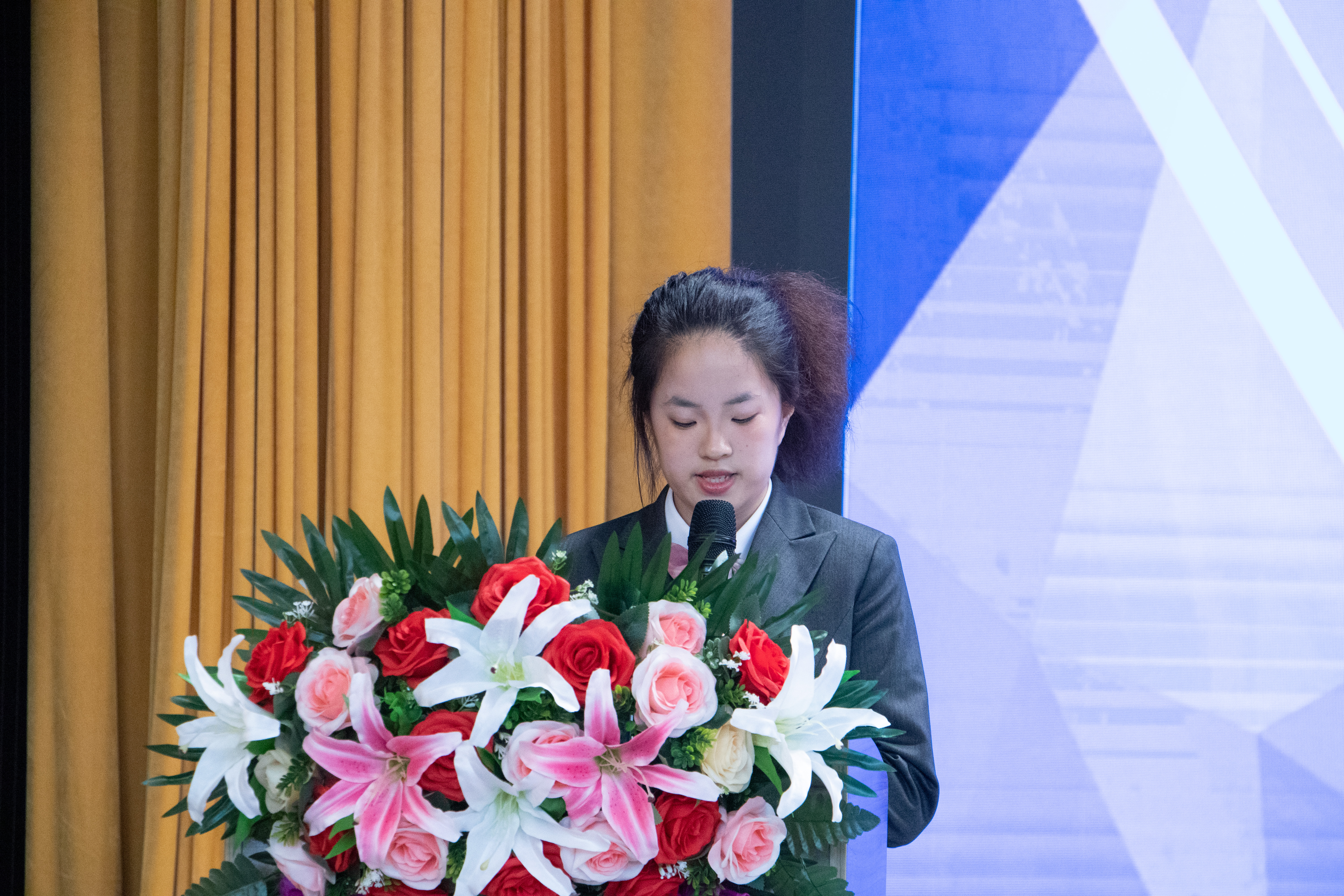 2023级数字媒体与艺术专业经欣桐作为学生代表发言。她首先对组织这次微留学项目的老师和工作人员表示衷心的感谢。她期待在这次微留学中亲身体验英国的教育模式和文化氛围,与当地的师生进行交流和互动,了解和学习英国的历史和文化,拓宽自己的视野和知识面。对于未来的学习和生活,她希望能够在英国的学校里结交更多的朋友,与他们分享彼此的文化和经验,在学业上取得更大的进步。同时,她也希望能够在生活中学会独立和自主,培养自己的生活技能和社交能力。最后,她表示,她将以青年领袖的标准严格要求自己,时刻牢记自己武工院学子的身份,严于律己,展现出武工院学子的良好形象。