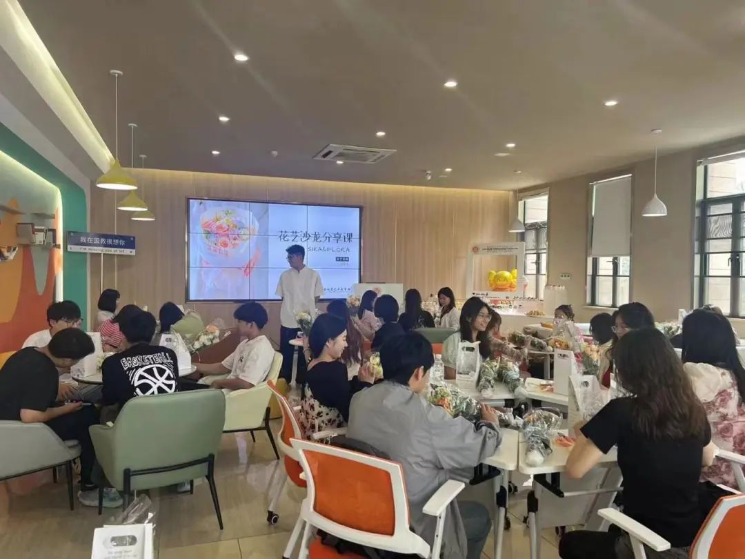 为拓展学生视野,增强学生对东西方不同国家花艺的了解,让更多同学体验到花艺的魅力,领略插花艺术中蕴含的独特哲理,6月7日下午,武汉工程科技学院开展“寰宇讲堂之欧韵插花分享体验”活动,专业花艺讲师何垒乐在学生事务中心一楼国教大厅教授了一场别开生面的插花艺术体验课,为同学们带来了一场视觉与心灵的双重盛宴。