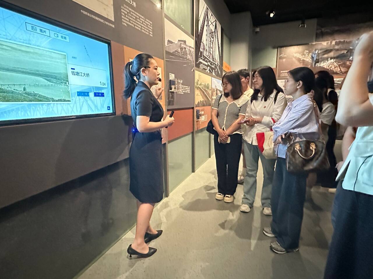 随后,师生们追随场馆讲解员的脚步,共同体悟我国桥梁建设的奋进历程,思索如何传承建桥者的奋斗精神与创新精神。