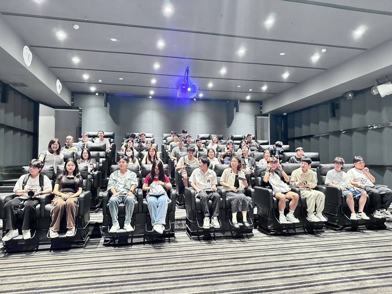 最后,师生们来到5D电影院观看影片《乔乔带你看大桥》。师生们在虚拟仿真系统中沉浸式体验新时代中国桥梁发展奇迹,从听觉、视觉、触觉等方面身临其境地感受中国桥梁建设成就。集体参观结束后,同学们自由开展小组“任务卡”式实践,根据课程设计的小组任务卡,各小组或云集于武汉长江大桥钢梁施工模拟展厅内,模仿工人作业动作并打卡留念,或在武汉长江大桥大型实验管柱前合影,或开展搭建拱形桥体手工实践。活动过程中,同学们再一次寻找和发现“桥”文化的独特与美好,在留影的过程中细细品悟“桥梁精神”。
