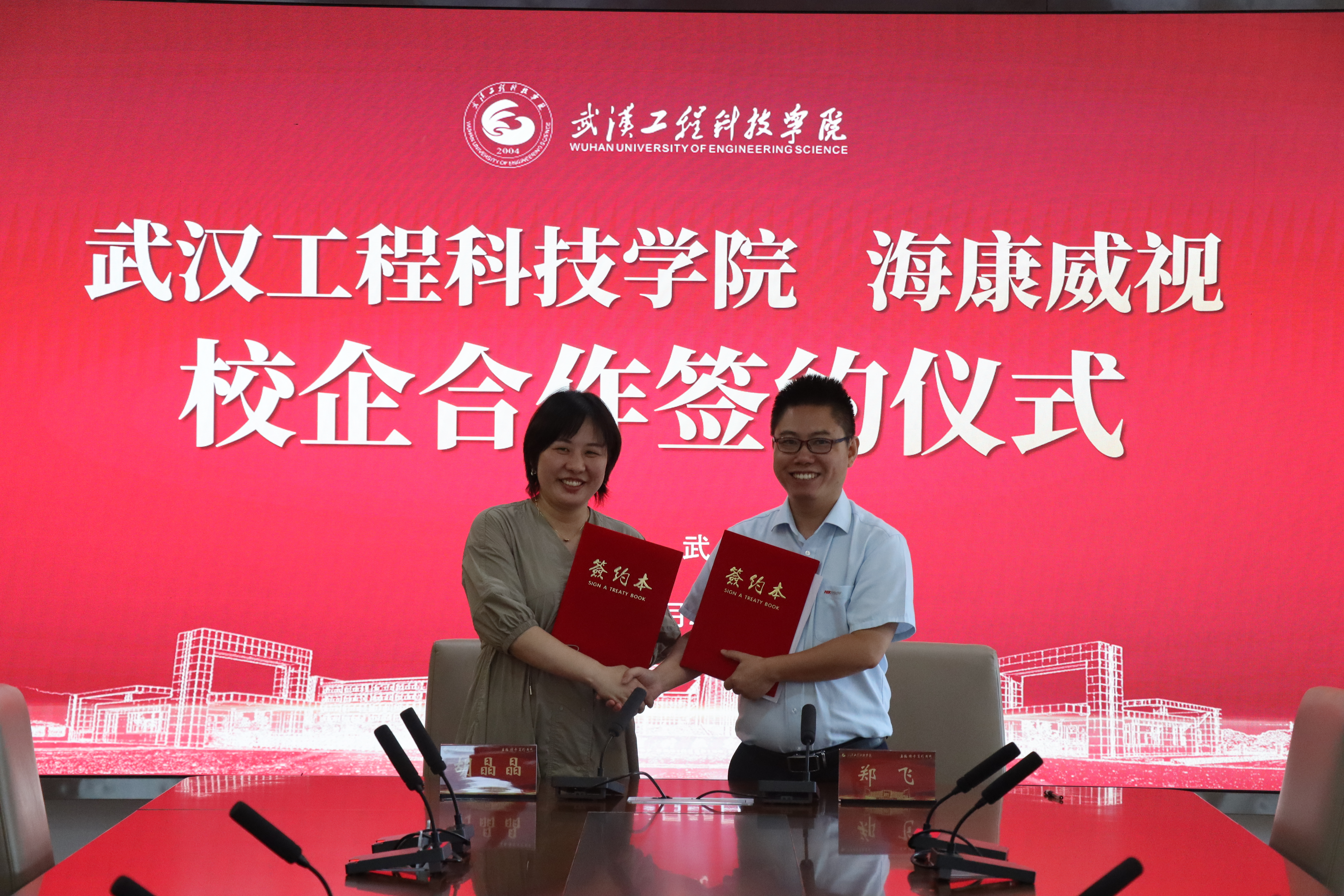 最后,由胡晶晶与郑飞分别代表武汉工程科技学院与海康威视共同签订了校企合作战略协议。