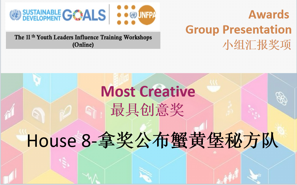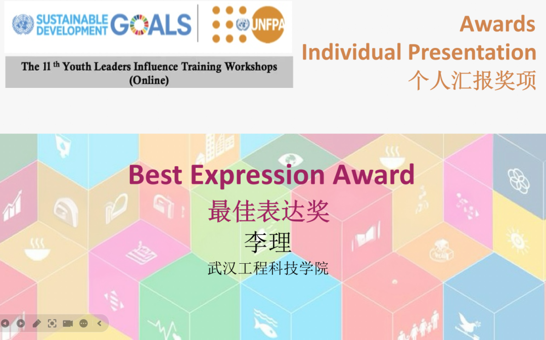 很高兴能够参加这次UPower培训活动,不知不觉已经接近了尾声。在此次学习中我了解到很多世界范围内有重大意义的议题,我充分认识到UNFPA在全球发展上的重要性。同时通过对各议题的了解,也增强了我对国际形势的认识和相关知识储备。也很荣幸能获得个人展示环节的最佳表达奖,希望有机会还可以与各位优秀青年一同探讨世界议题,贡献出一份我自己的力量。