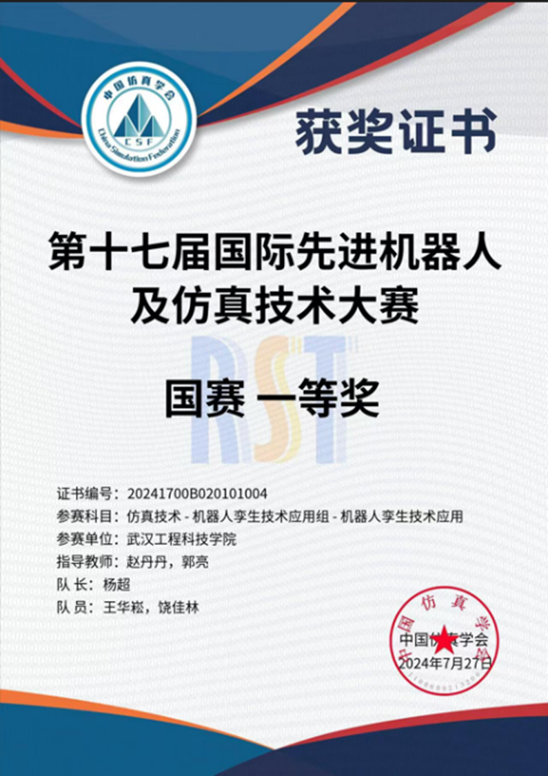 喜报!武工院学子在“智彩精机杯”第十七届国际先进机器人及仿真技术大赛中斩获国赛一等奖