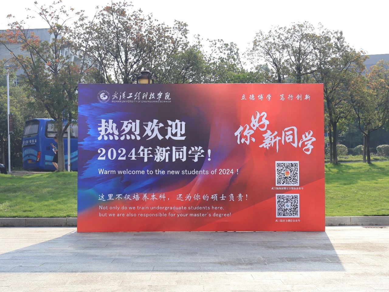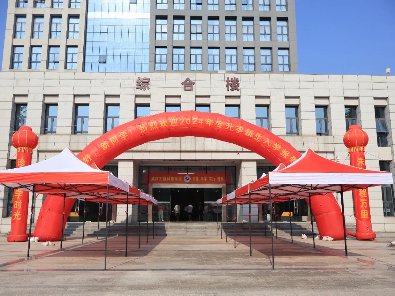 一大早,迎新现场就热闹非凡,不少家长陪同孩子来到校园,亮眼醒目的拱门和桁架在学校综合楼门口欢迎着新同学的到来。2024年视觉传达专业专升本新生魏佳璐的家长说:“这是第二次来到武工院,看到孩子的学校越来越好,真心地感到开心。希望孩子能够在学校好好学习,争取今后能考上研究生。”