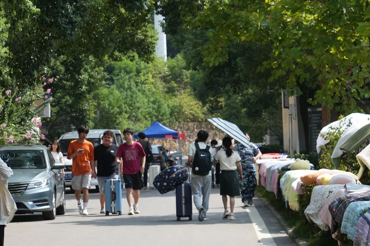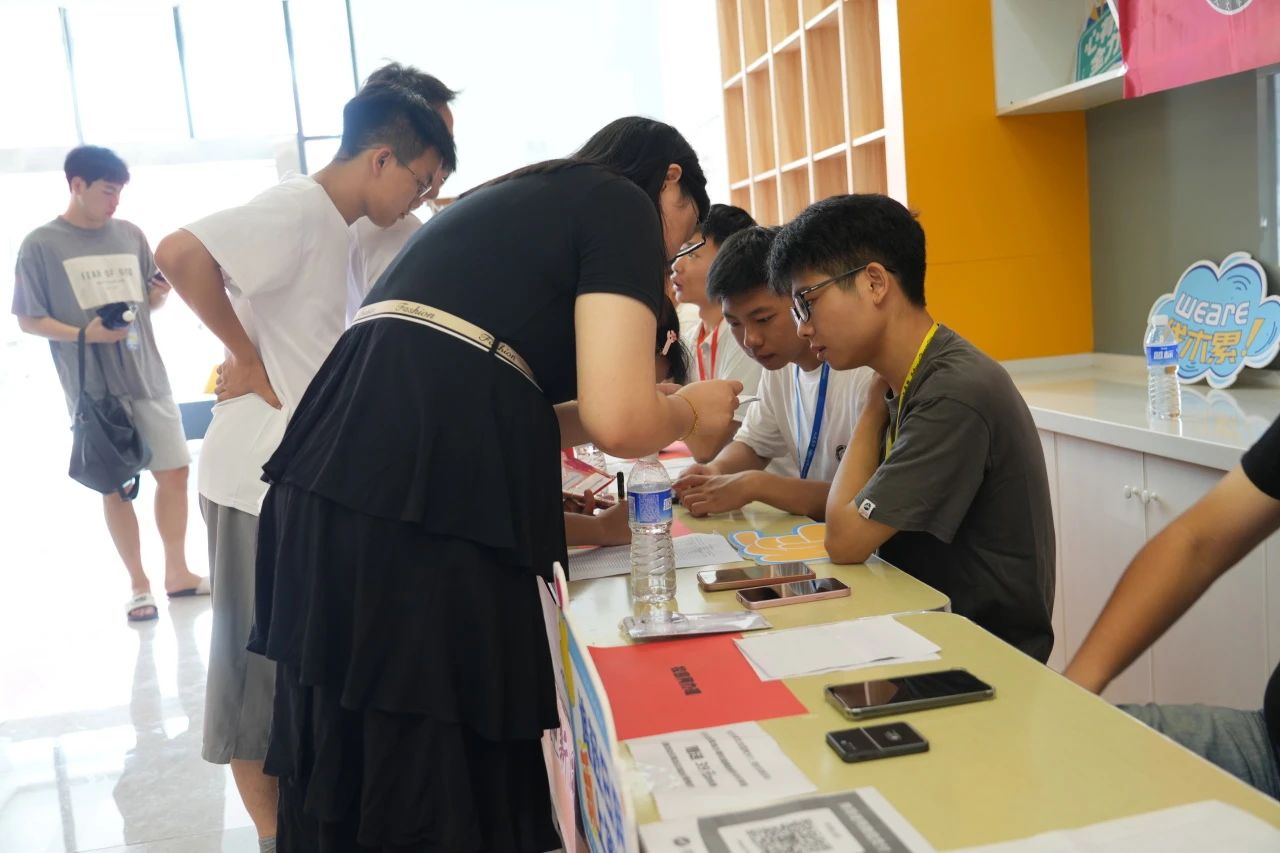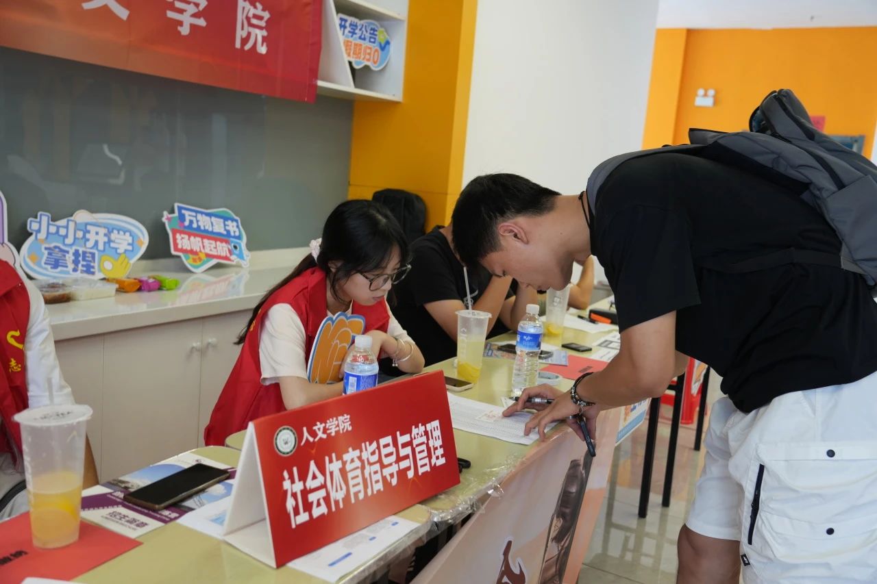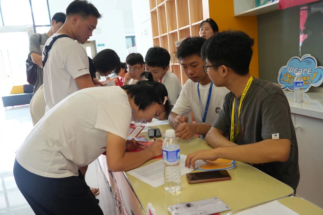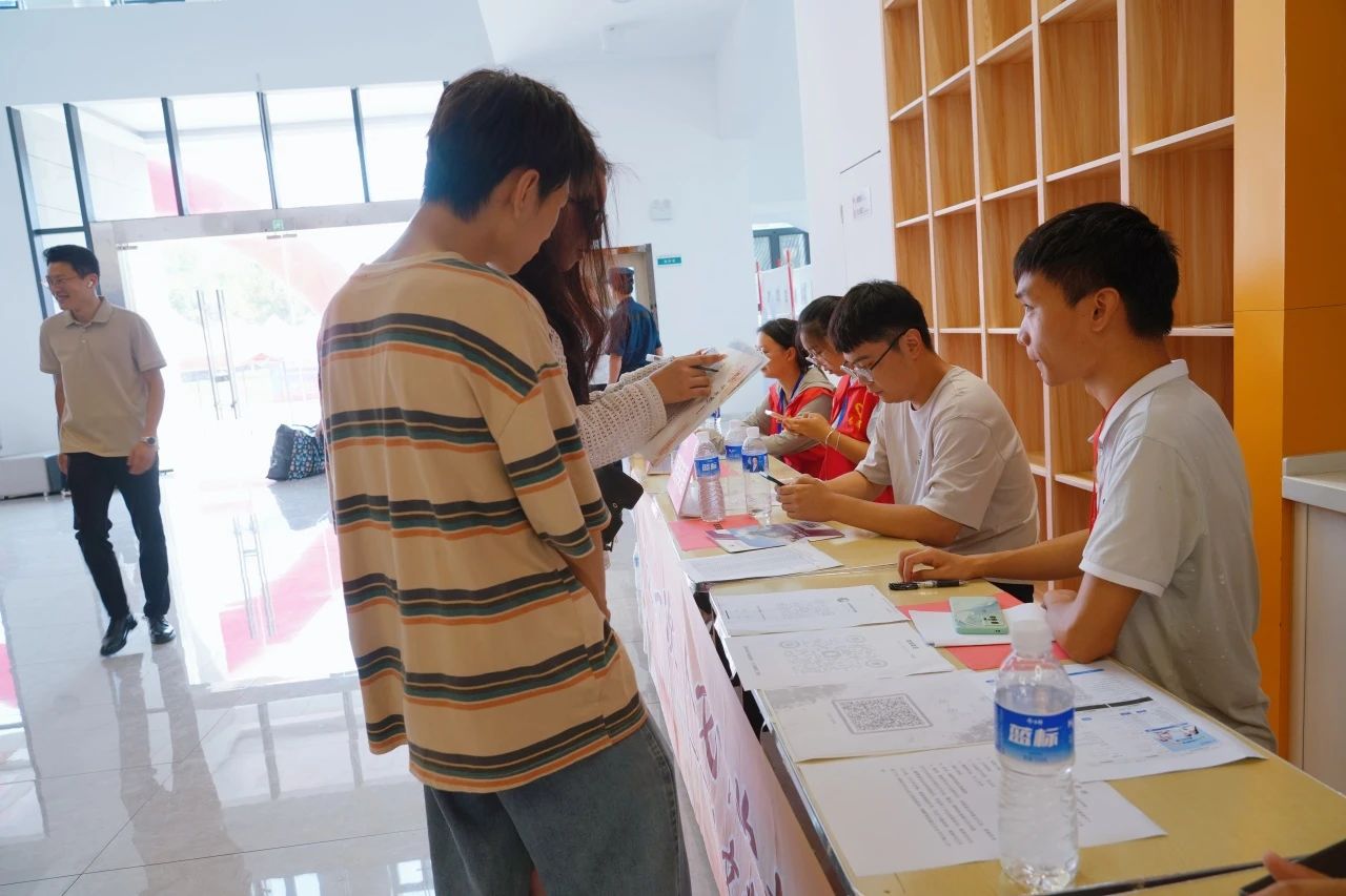各学院都在迎新现场热情欢迎新同学的到来,井然有序地开展工作。人文学院在迎新点摆放了各具特色的立牌,艺术与传媒学院的志愿者高举着“欢迎新同学”的手牌,以最热情的姿态展现着对新同学的欢迎。新生注册点分别设立登记处、校园卡办理处、住宿卡领取处等,化繁为简,实现了从注册到入住的“一站式报到”。除此之外,报到现场还分布着多个免费饮水点,为新生和家长提供免费的饮用水,在炎热的天气为他们送去一丝清凉。