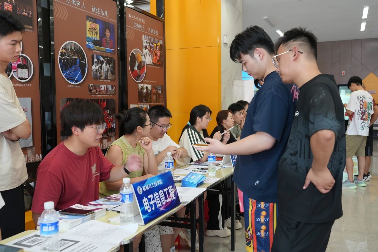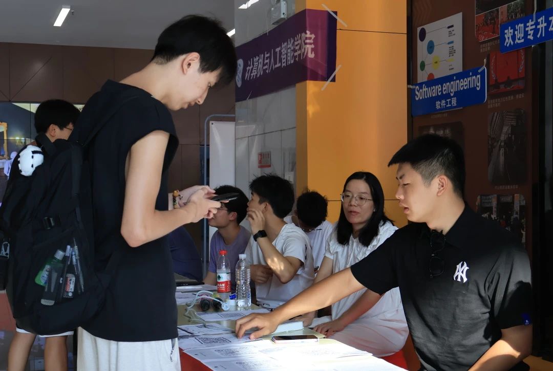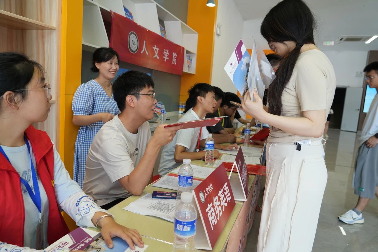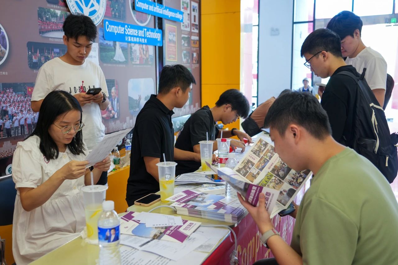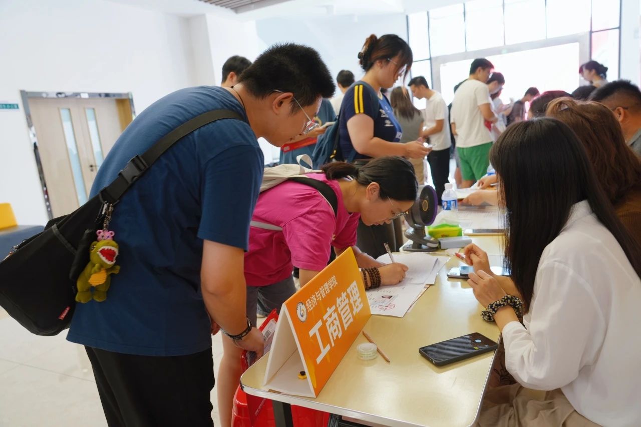 各学院都在迎新现场热情欢迎新同学的到来,井然有序地开展工作。人文学院在迎新点摆放了各具特色的立牌,艺术与传媒学院的志愿者高举着“欢迎新同学”的手牌,以最热情的姿态展现着对新同学的欢迎。新生注册点分别设立登记处、校园卡办理处、住宿卡领取处等,化繁为简,实现了从注册到入住的“一站式报到”。除此之外,报到现场还分布着多个免费饮水点,为新生和家长提供免费的饮用水,在炎热的天气为他们送去一丝清凉。