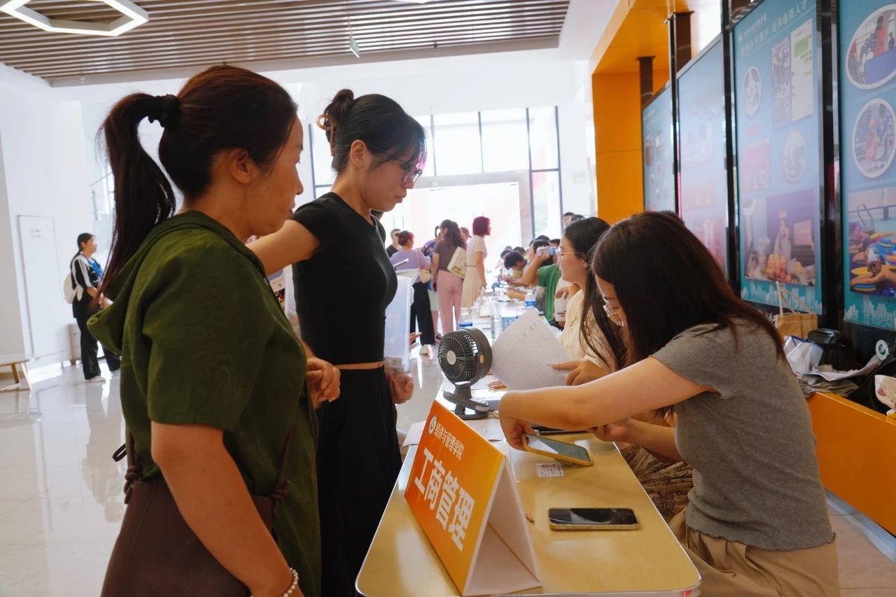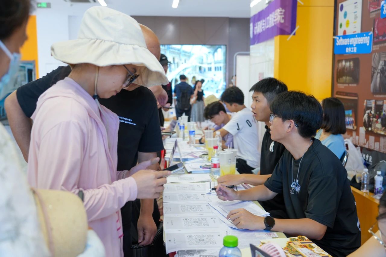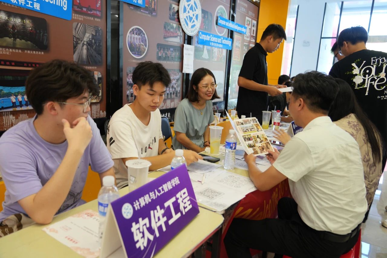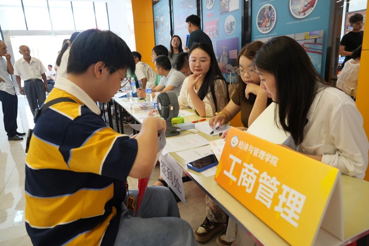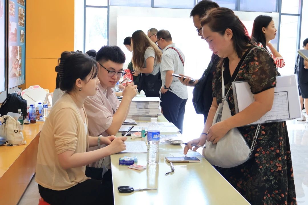 各学院都在迎新现场热情欢迎新同学的到来,井然有序地开展工作。人文学院在迎新点摆放了各具特色的立牌,艺术与传媒学院的志愿者高举着“欢迎新同学”的手牌,以最热情的姿态展现着对新同学的欢迎。新生注册点分别设立登记处、校园卡办理处、住宿卡领取处等,化繁为简,实现了从注册到入住的“一站式报到”。除此之外,报到现场还分布着多个免费饮水点,为新生和家长提供免费的饮用水,在炎热的天气为他们送去一丝清凉。