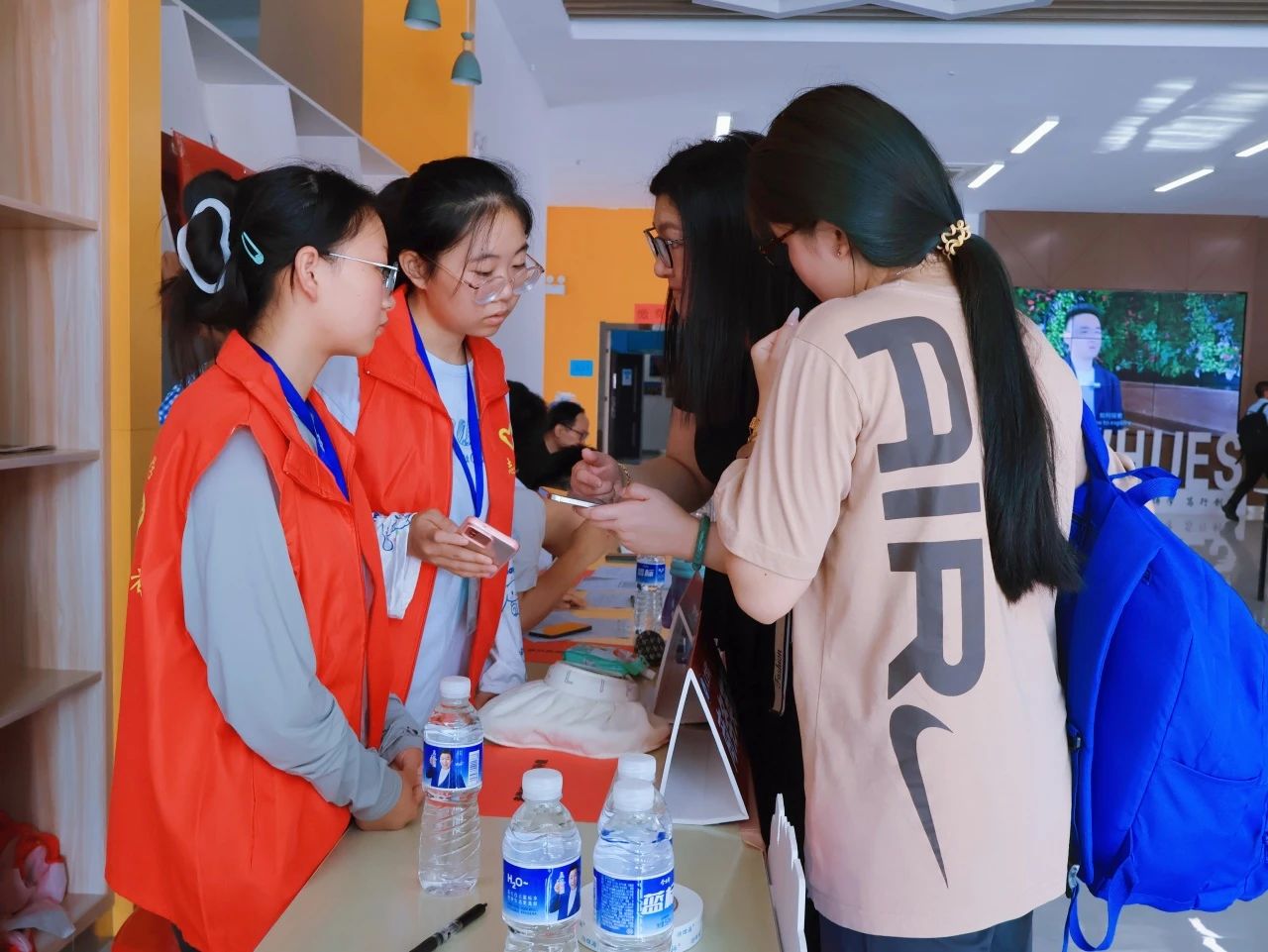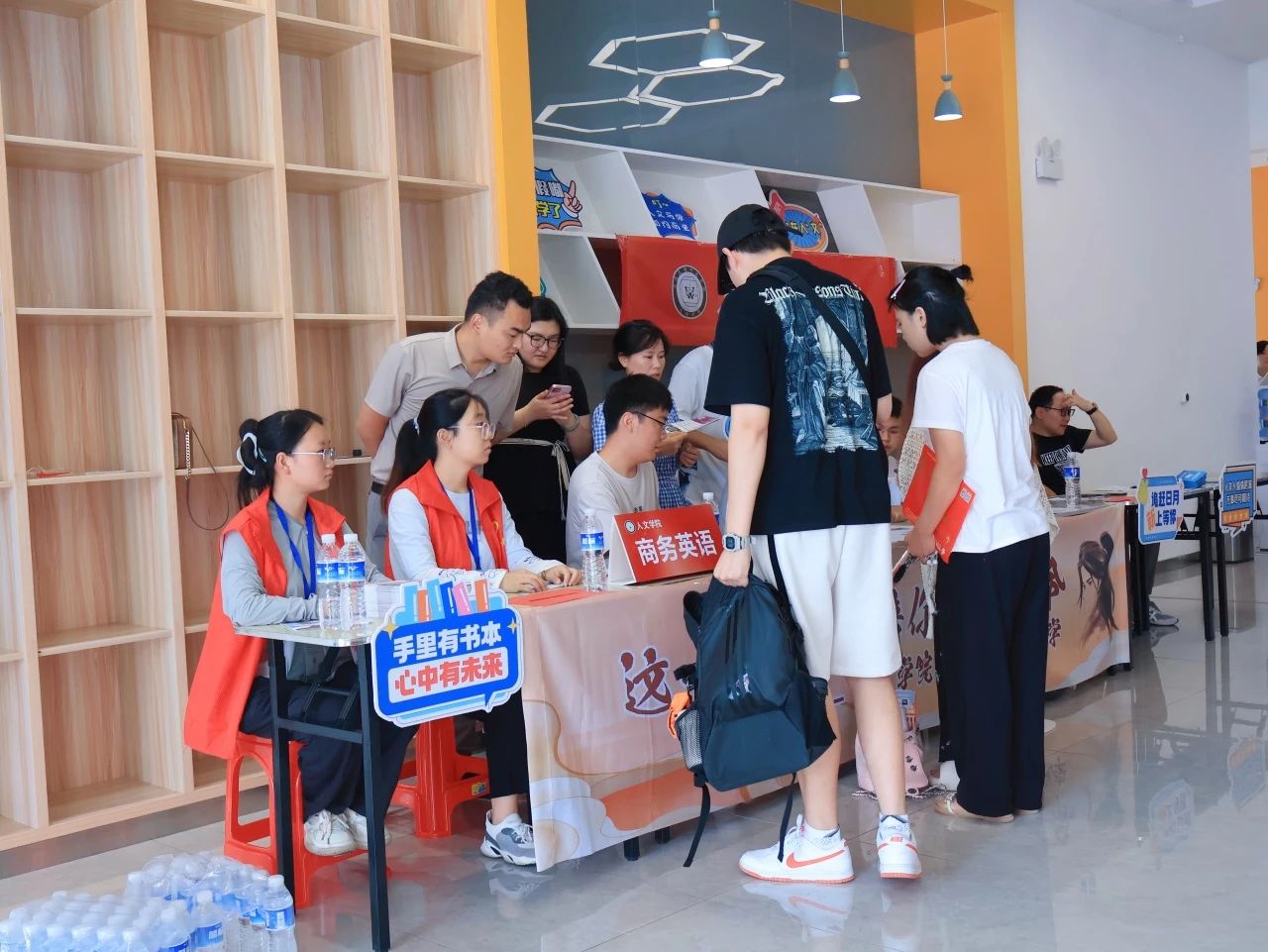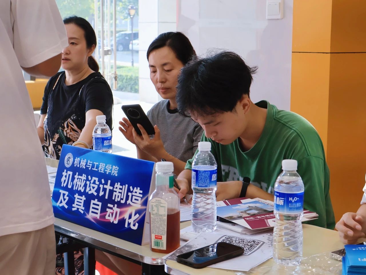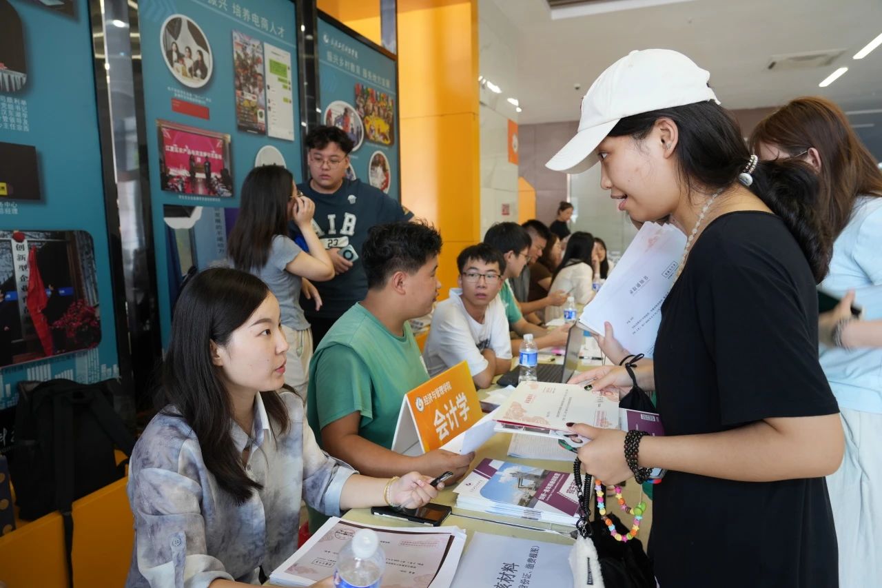 各学院都在迎新现场热情欢迎新同学的到来,井然有序地开展工作。人文学院在迎新点摆放了各具特色的立牌,艺术与传媒学院的志愿者高举着“欢迎新同学”的手牌,以最热情的姿态展现着对新同学的欢迎。新生注册点分别设立登记处、校园卡办理处、住宿卡领取处等,化繁为简,实现了从注册到入住的“一站式报到”。除此之外,报到现场还分布着多个免费饮水点,为新生和家长提供免费的饮用水,在炎热的天气为他们送去一丝清凉。