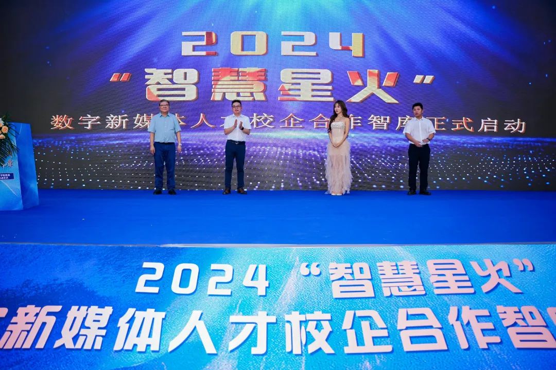 张军强、橙子、王加青、储祖旺共同上台为2024“智慧星火”数字新媒体人才校企合作智库完成启动仪式。