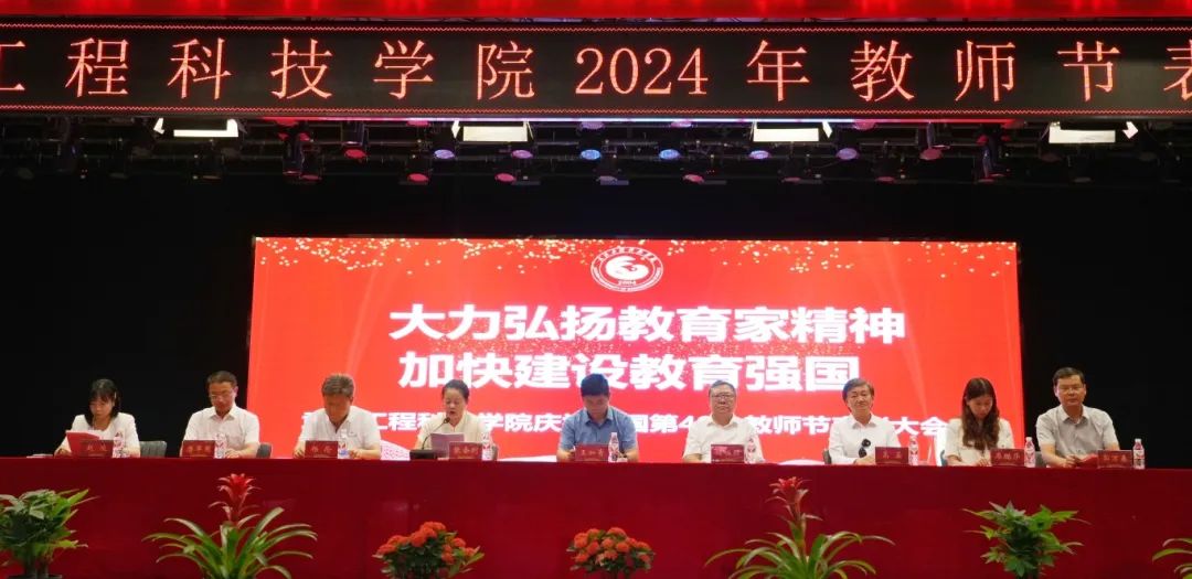 为激励广大教师见贤思齐、积极进取,争做学生为学、为事、为人的大先生,在全校营造学习先进、争当先进的浓厚氛围,9月10日下午,武汉工程科技学院在三教报告厅举办庆祝全国第40个教师节暨“大力弘扬教育家精神,加快建设教育强国”2024年教师节表彰大会。学校全体在校领导出席大会,各学院、各职能处室党政负责人以及奋战在各个战线上的教职工代表参加会议。会议由学校党委书记张会利主持。