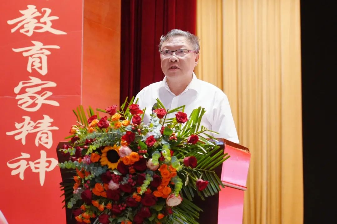 校长储祖旺宣读《中共武汉工程科技学院委员会关于2024年教师节先进集体和先进个人的表彰决定》,并号召学校各单位和全体教职工学习先进,比学赶超,争先创优,以饱满的热情、良好的面貌和务实的作风投入到各项工作中,为提高教学质量和人才培养质量,推动学校教育事业发展做出新的贡献。