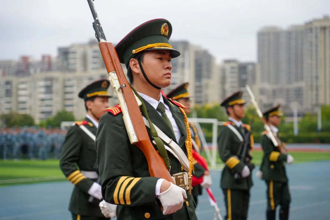 陆军工程大学军械士官学院教官进行队列表演。他们步伐整齐划一,每一个动作都精准到位,展现出飒爽的英姿和良好的精神面貌,彰显出军人的威严与风采。